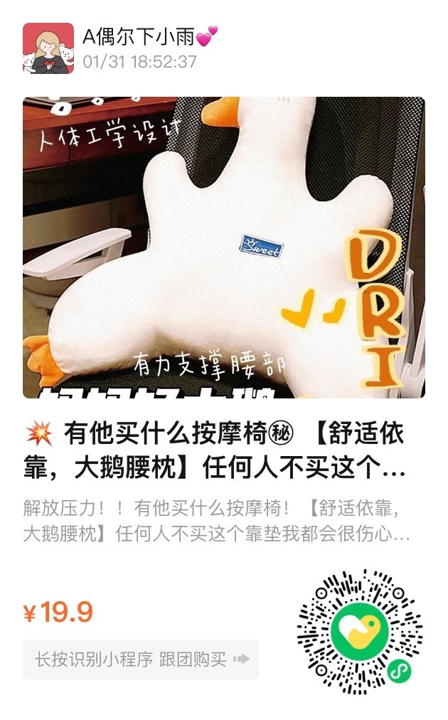有他买什么按摩椅 【舒适依靠,大鹅腰枕】任何人不买这个靠垫我都会很伤心的, 久坐党、上班族、动不动就腰痛,不要说了,你需要它