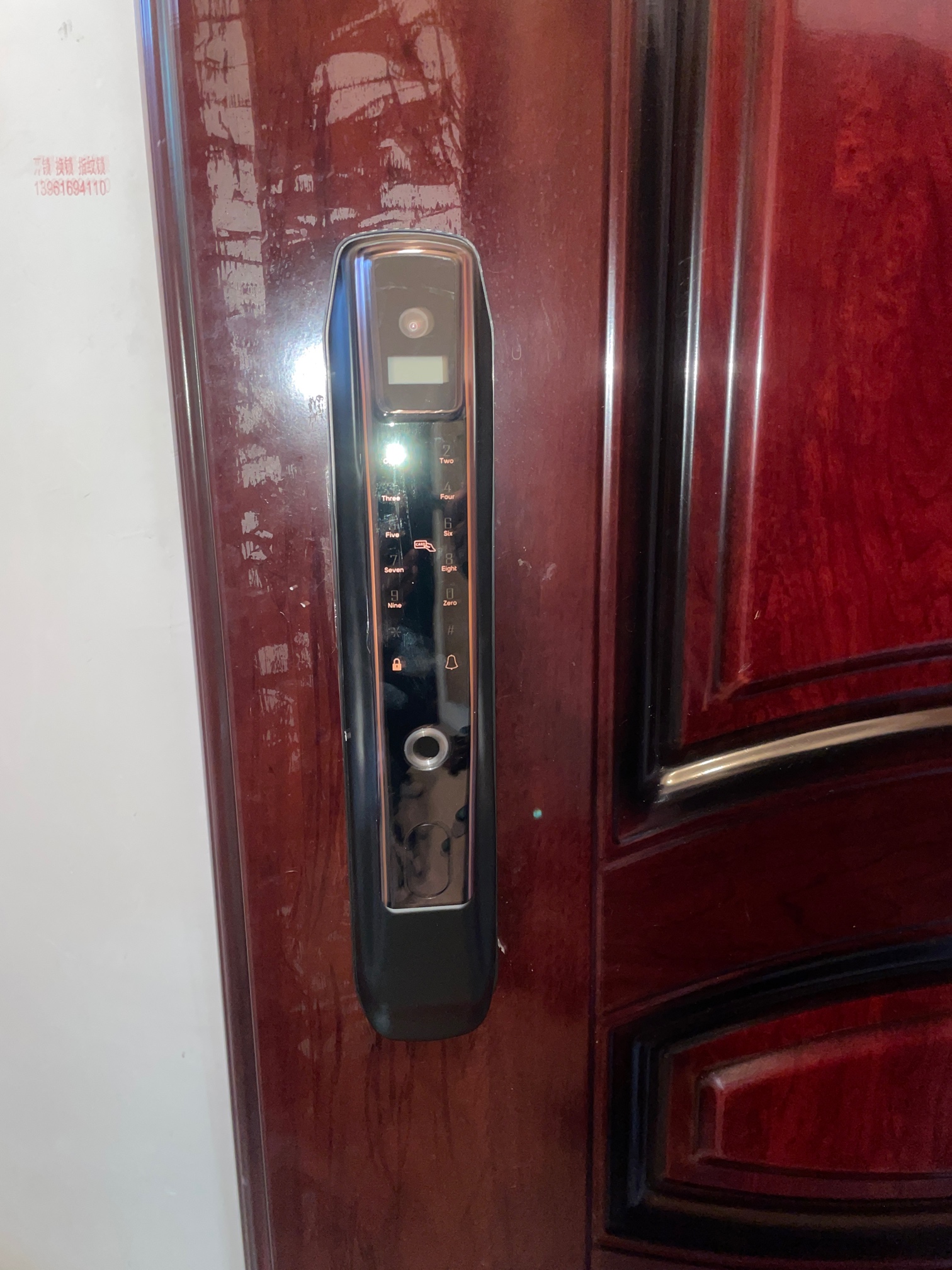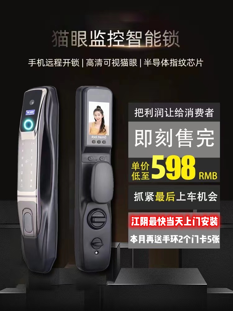 功能:指纹,密码,刷卡,人脸识别。钥匙,电子猫眼,信息推送手机,手机远程开锁,微信临时密码。