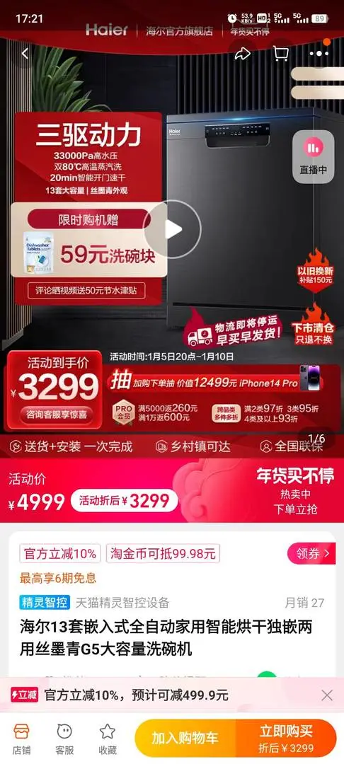 全新未拆封 原厂质保安装 只要1999 送两瓶亮碟洗碗粉。
