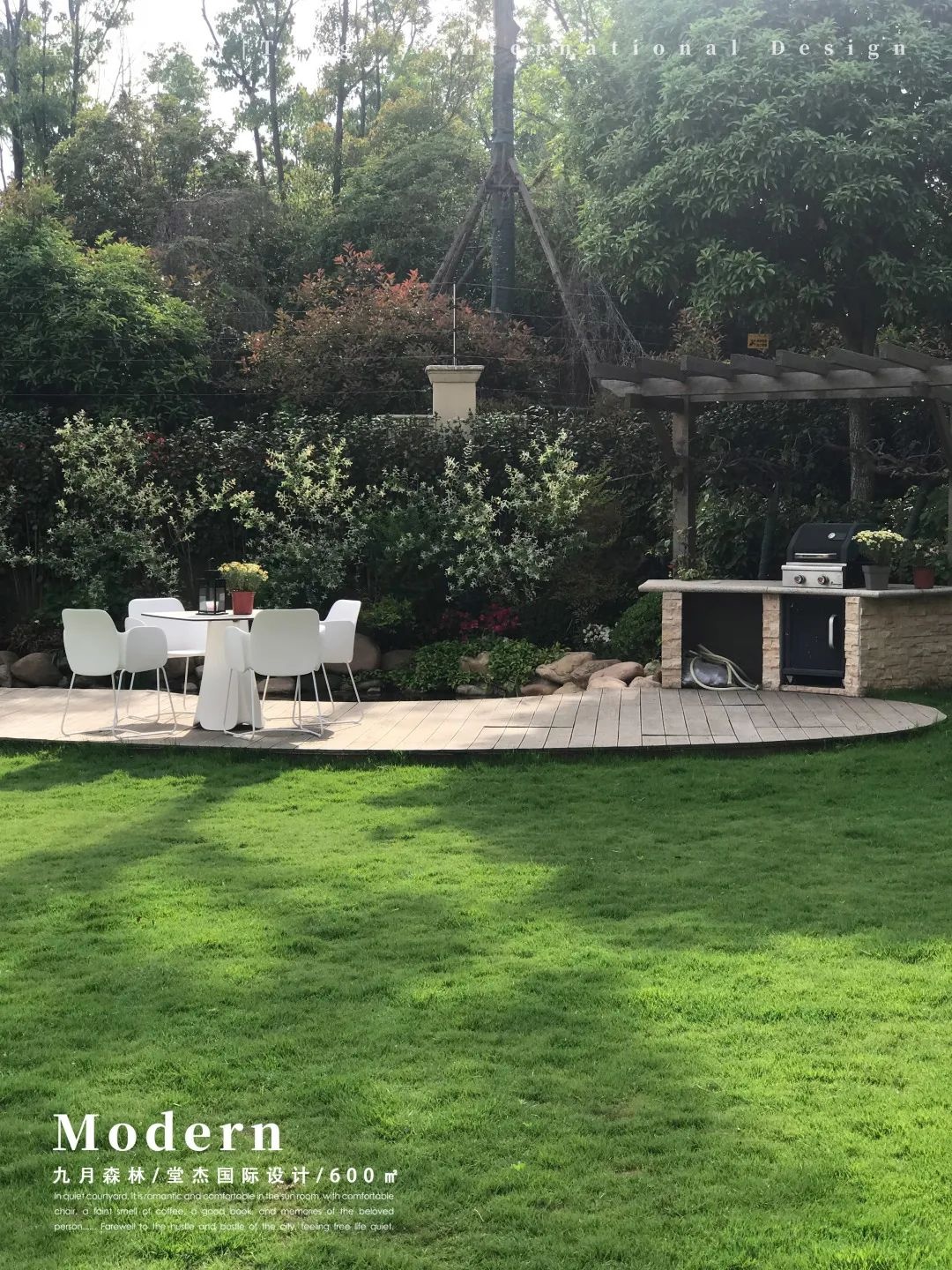 由二楼观景阳台往下看,大片绿地花园映入眼前,城市中的清凉绿意总是尤为珍贵。试想春日时分,风暖鸟声碎,日高花影重,家人一同坐在阳台的沙发或者草地边的纯白座椅上,就着日常琐事闲谈,晒着和煦阳光打盹,抑或只是单纯地发发呆,也是极为艳羡的生活记忆。