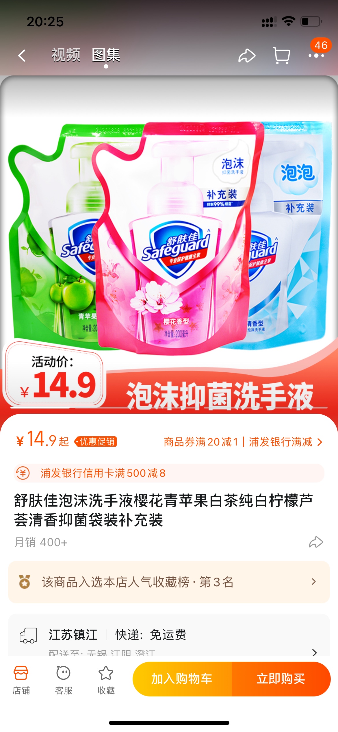 舒肤佳洗手液。淘宝15一袋我15两袋