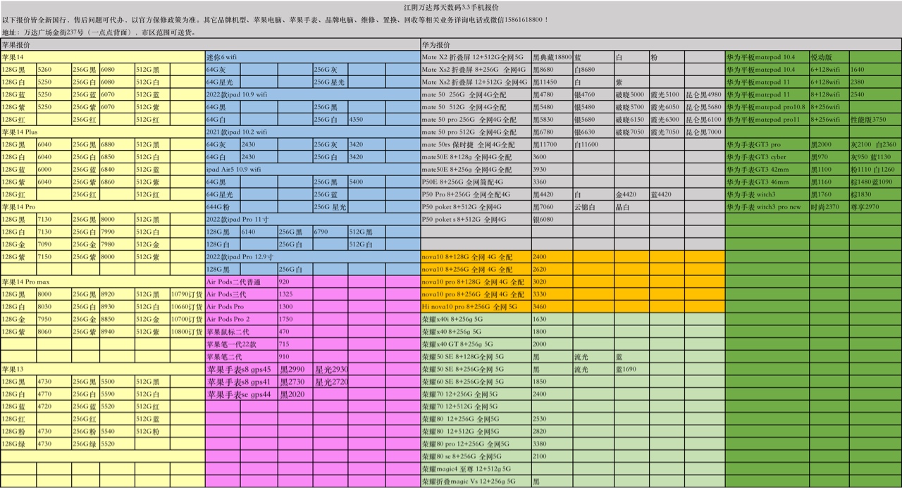 苹果华为3.3报价