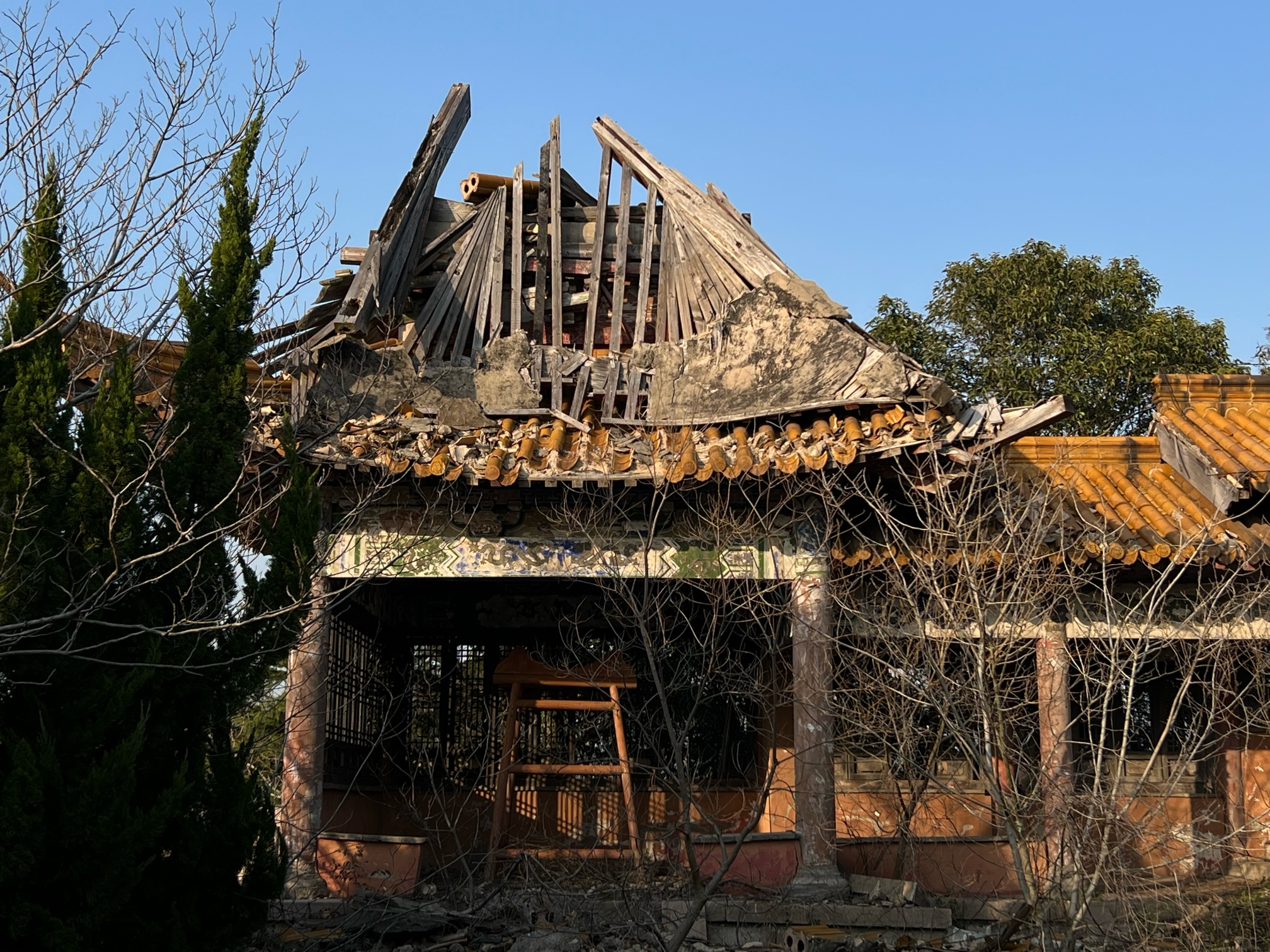 现存的残破建筑还能依稀感受到当年的辉煌,多年荒废之地即将迎来改造,来此打卡的人络绎不绝,破败沧桑遇上落日橘子海简直美哭了