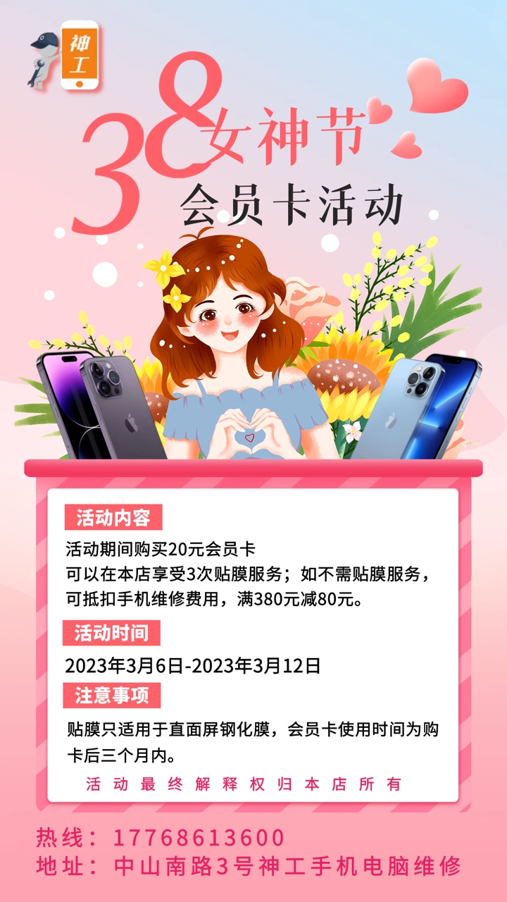 3.8女神节,神工手机电脑维修送大礼!