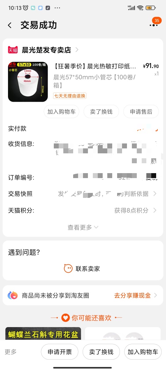 有晨光热敏打印纸一箱100卷,未开封,贱卖60元出售,市区自提,在新百业广场附近!需要电联13921364262