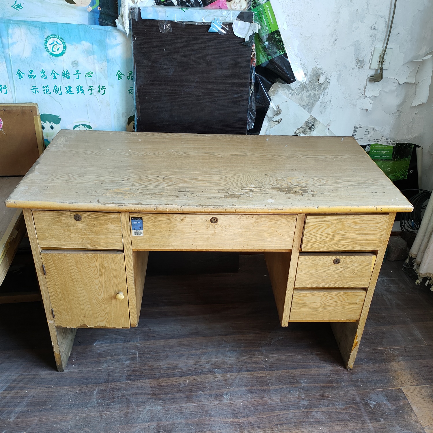 另有旧桌子一张,尺寸长120宽60高75左右,应该是实木的,手摇纹丝不动,很扎实。