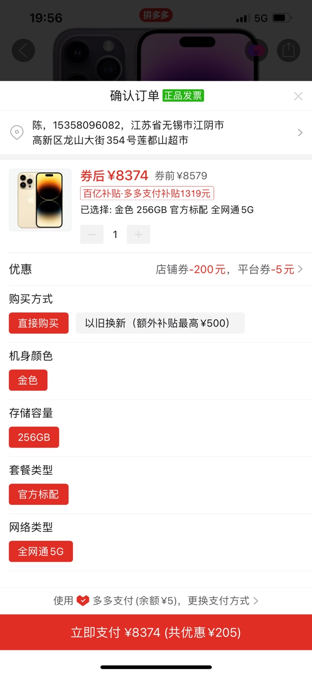 8800卖一个全新苹果14pro max256g的,只卖一天
