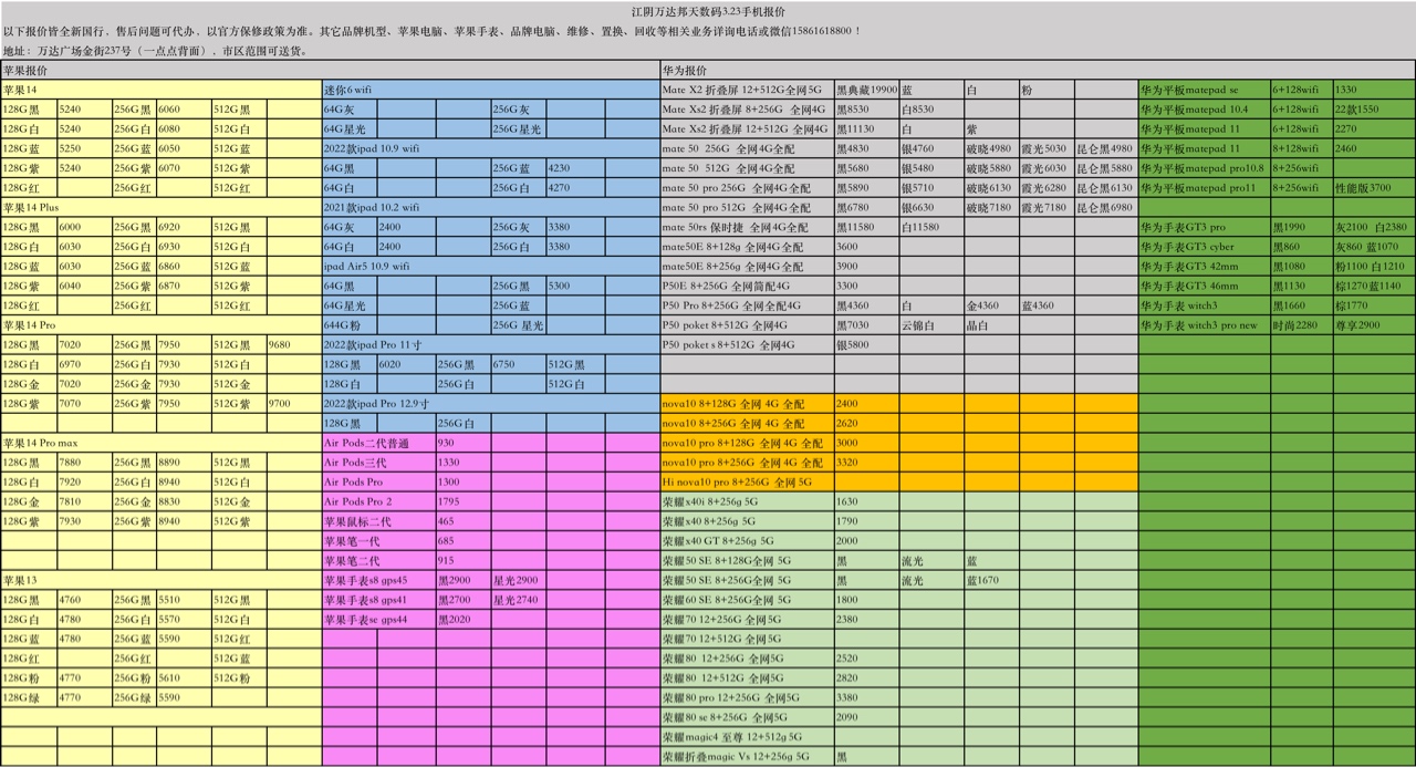 苹果华为3.23报价