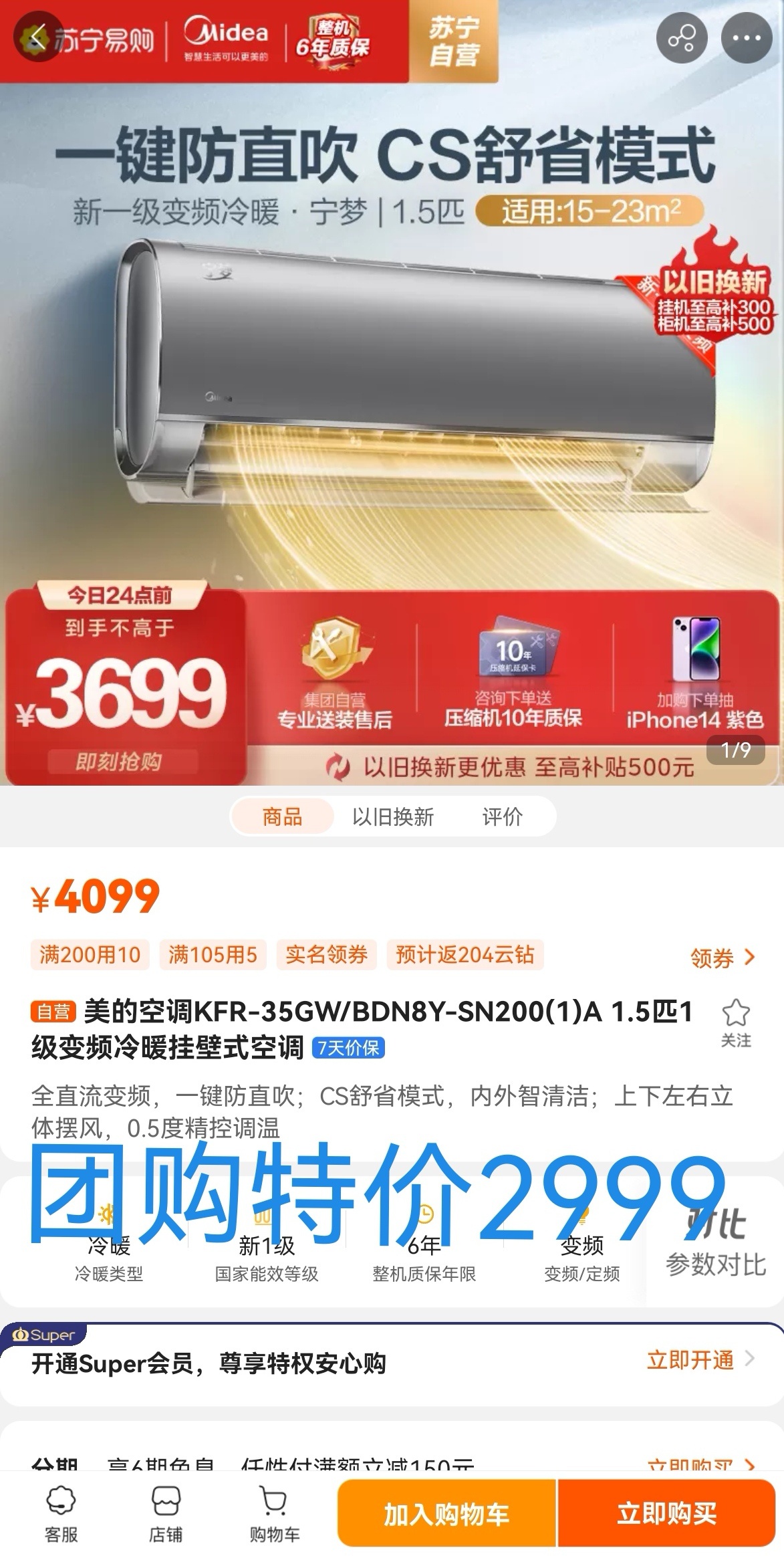 有需要的私信,另有美的1.5匹电商机型,优惠700元