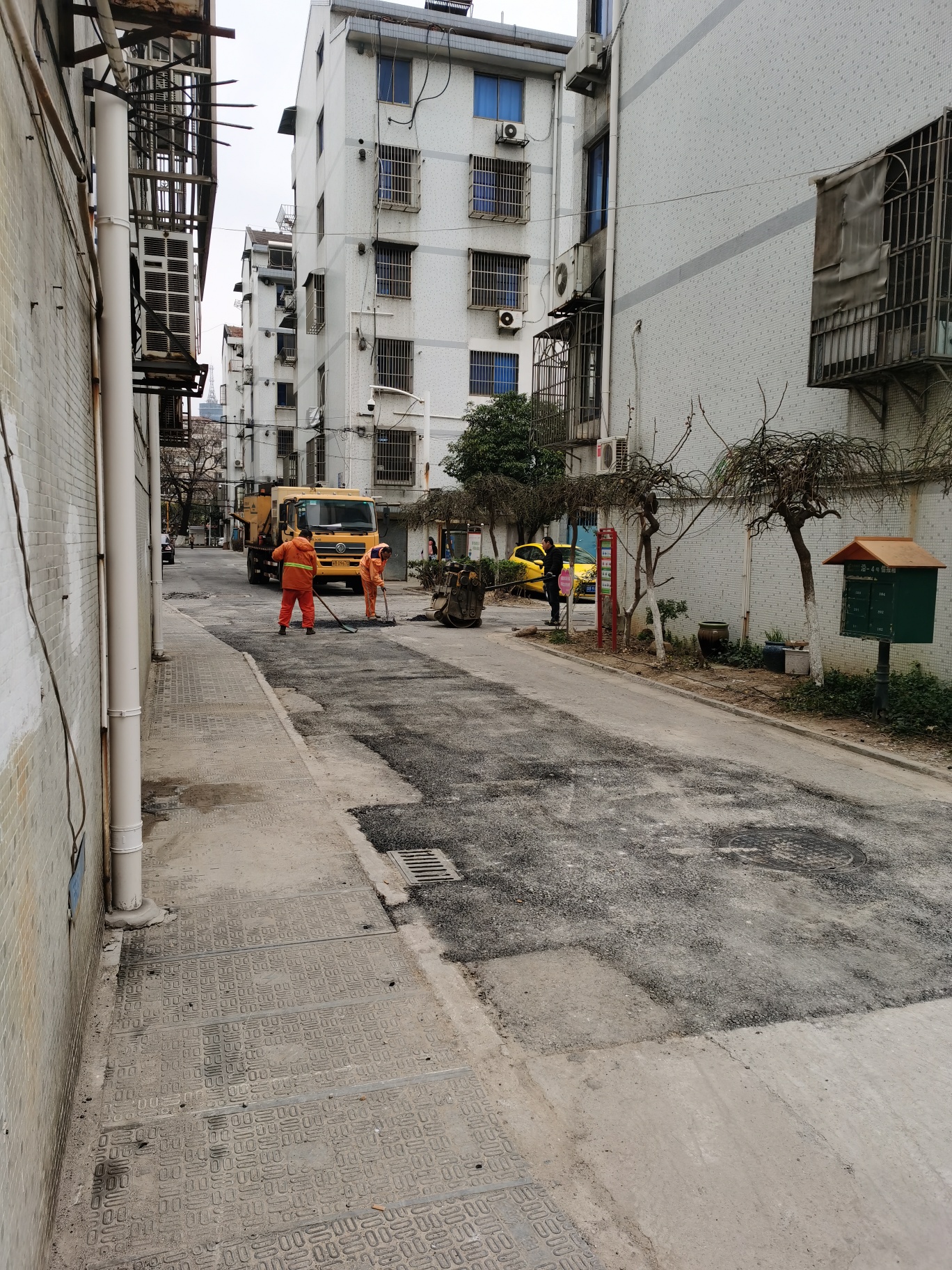 电力线移到地下了,但是有些电线杆还没法移除,好多光缆挂在上面,一楼外面拉的线更加乱。我看到有些小区楼道门和楼道内都整修了。是不是每天小区整改的标准都不一样。