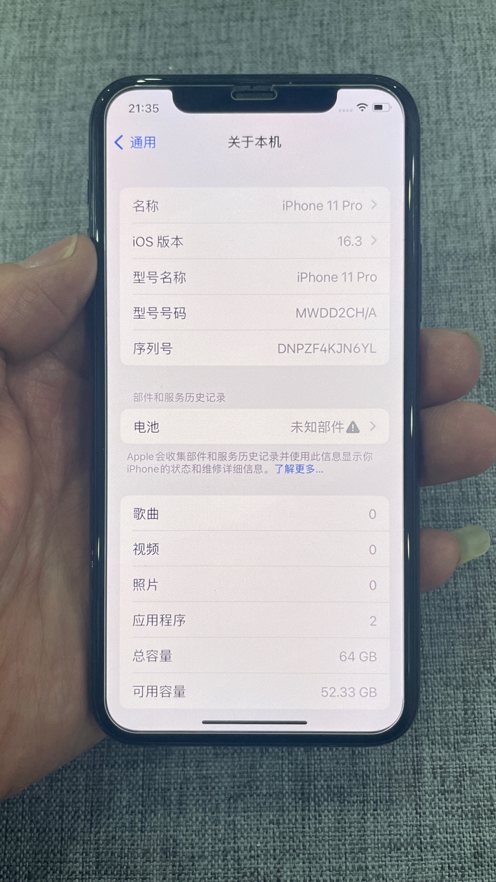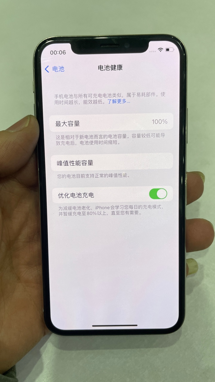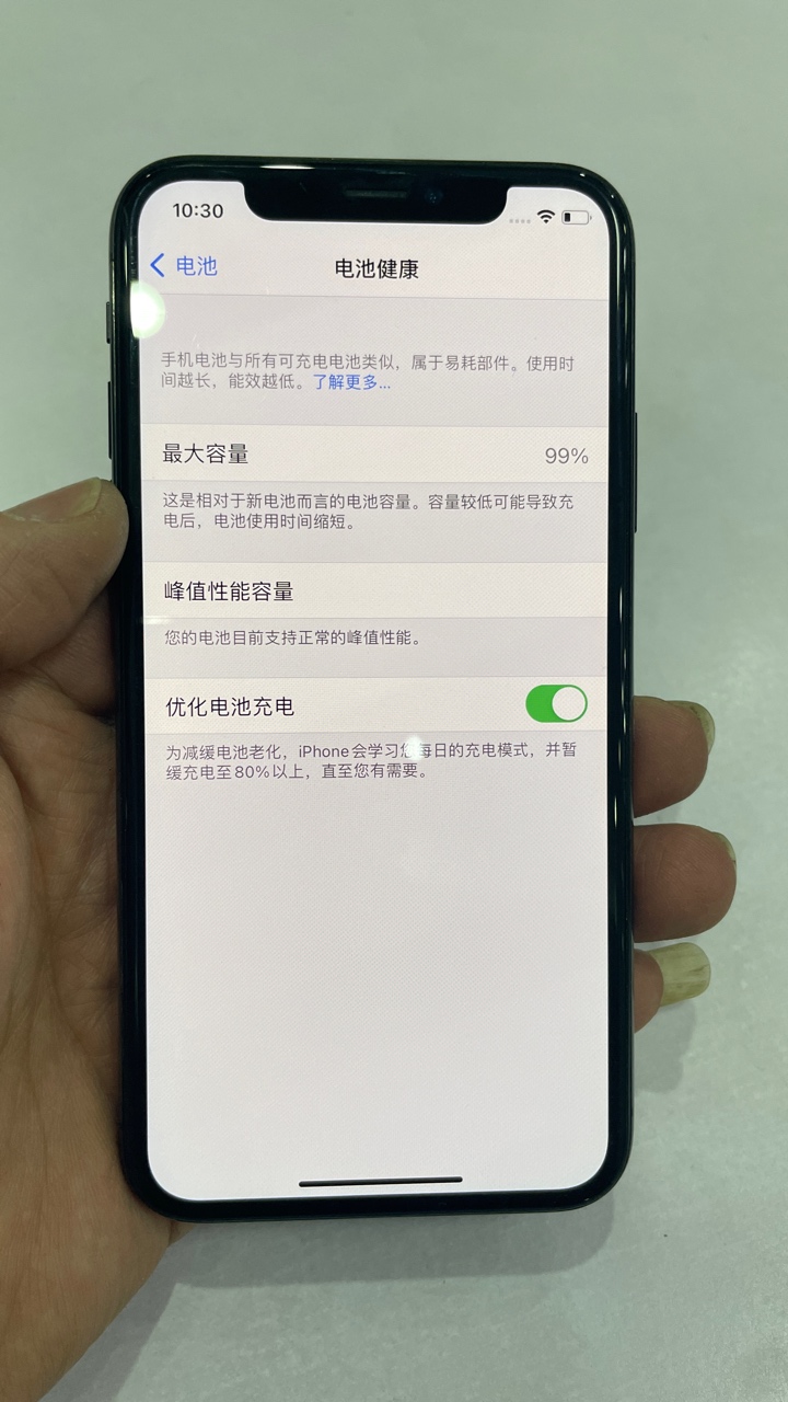 外观95新 电池100% 国行白色256G,换过原装屏幕、电池,功能一切正常!