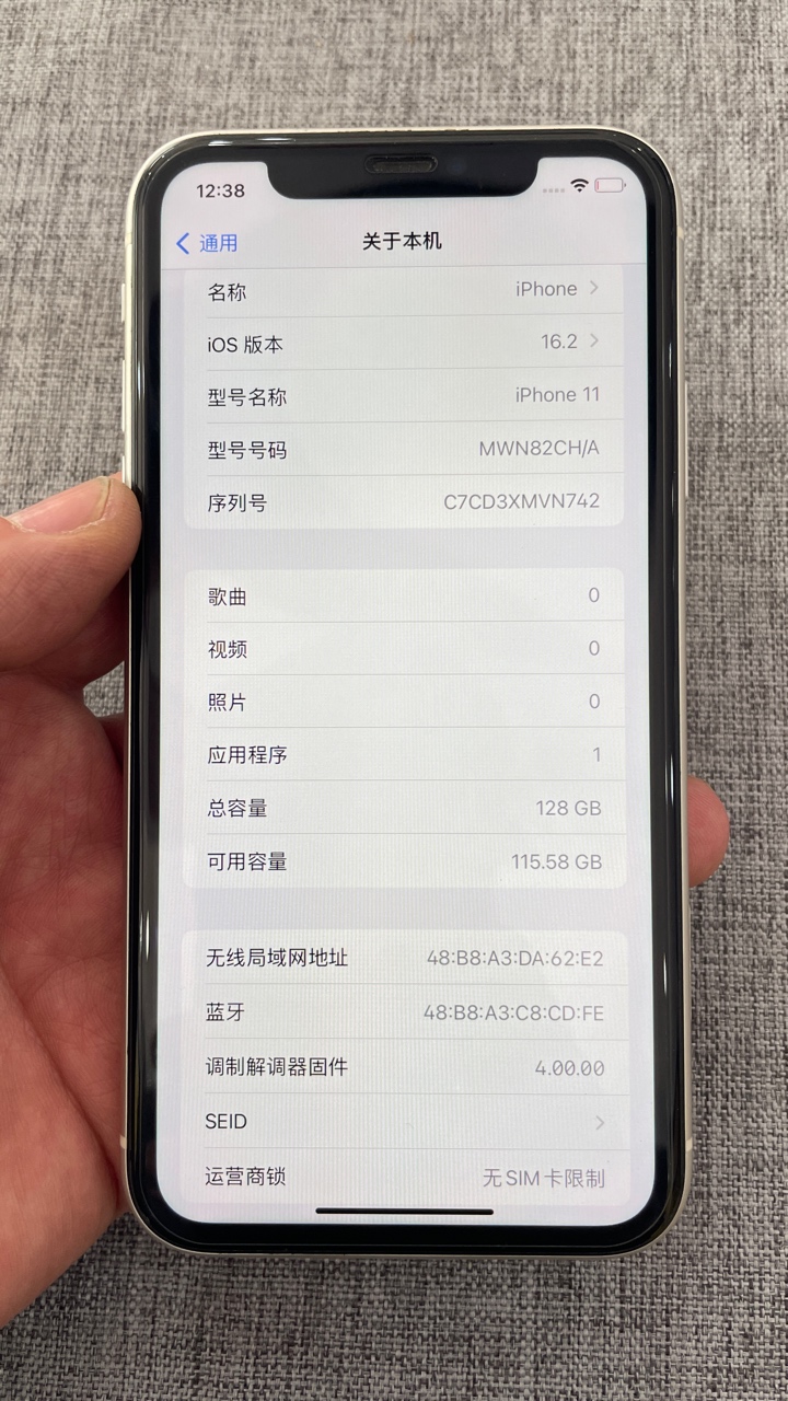 外观98新 电池99% 国行黑色128G,原装机,只换过全新原厂电芯,续航给力,爱思全绿,保证功能一切正常,使用没有一点缺陷!