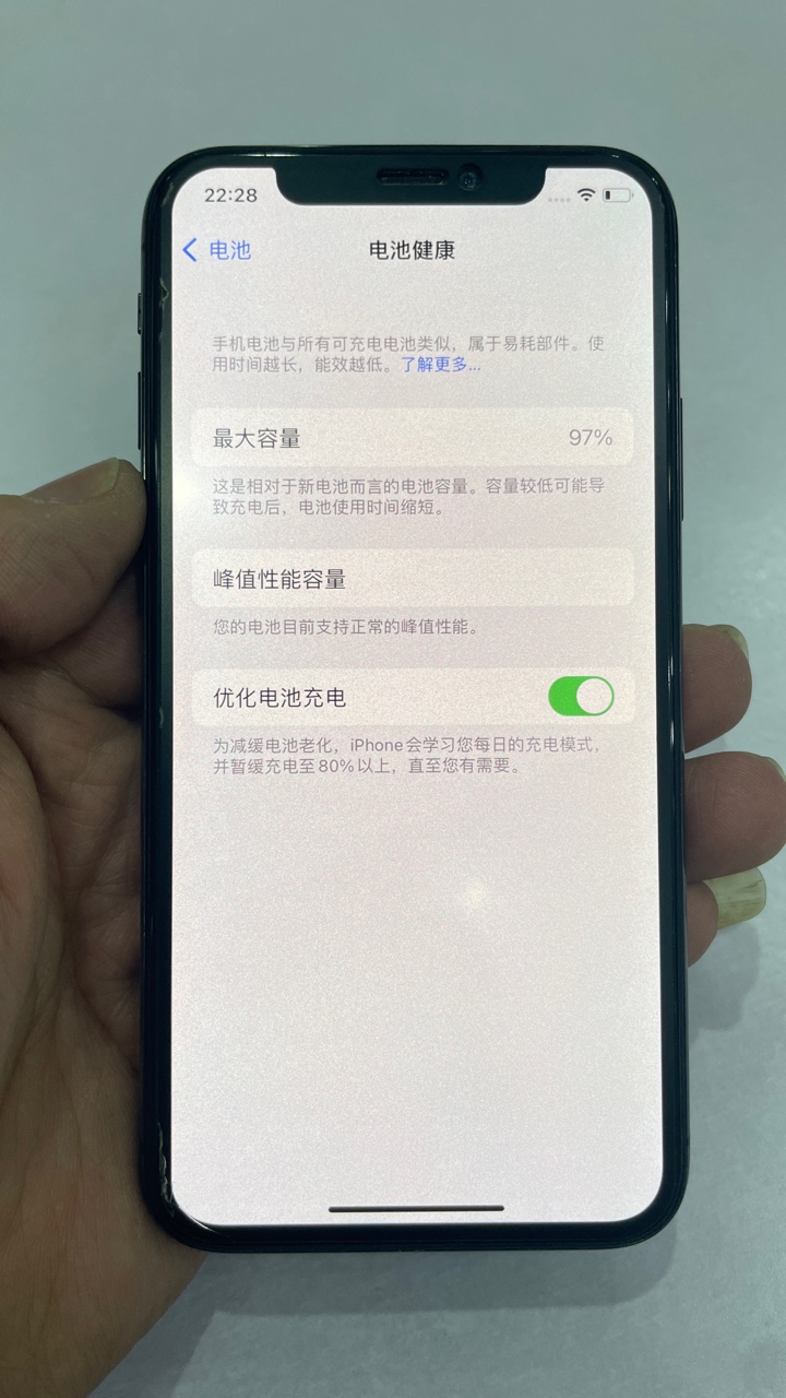 外观95新 电池97% 256G黑色,换过电池,功能一切正常!