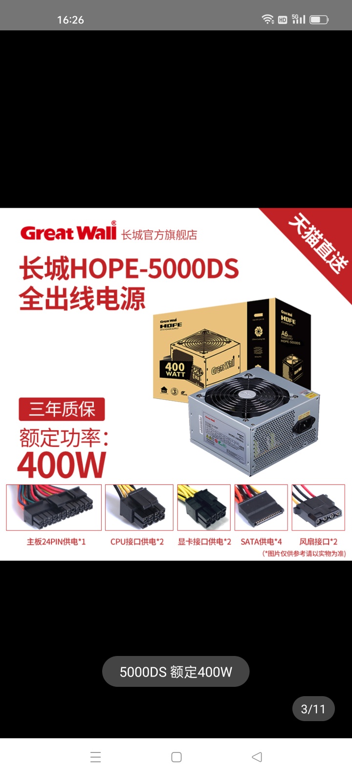出全新台式机长城电源一个