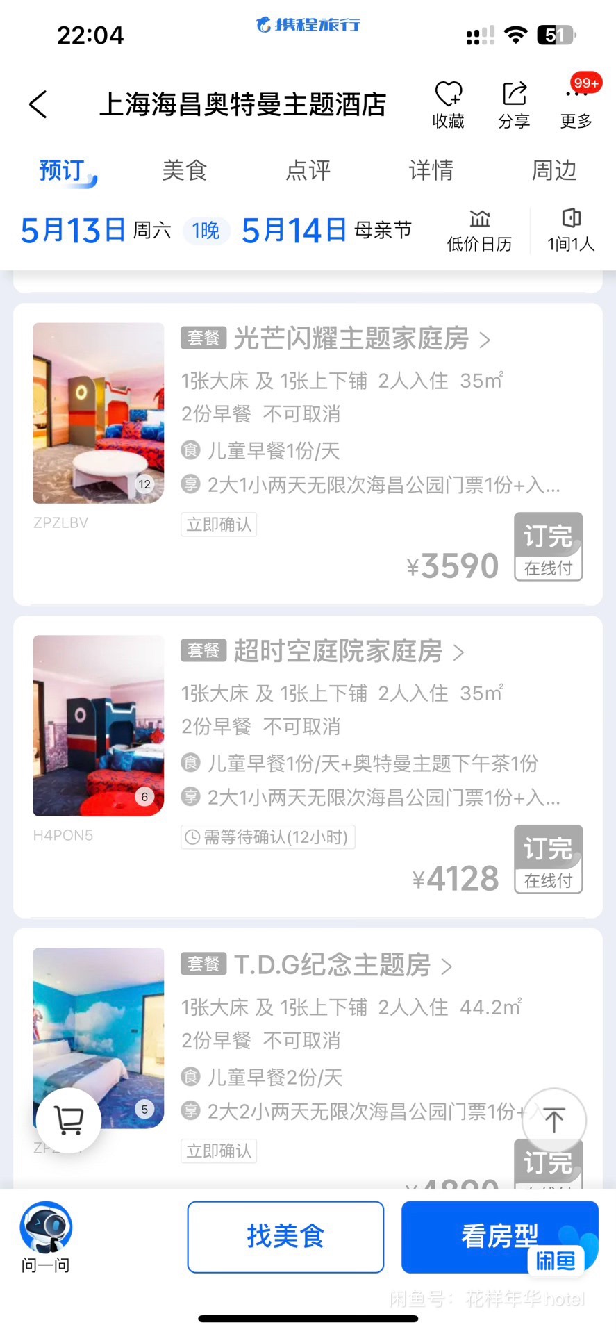 上海海昌奥特曼酒店 本周六 2023年5月13入住,光芒闪耀家庭房(2大1小早餐+2大1小二日海昌公园无限次门票)因临时有事,故转让。原价2699