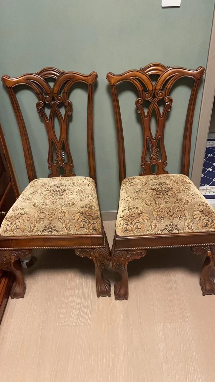 红色实木扶手的椅子是1300一对,白色的那一对便宜