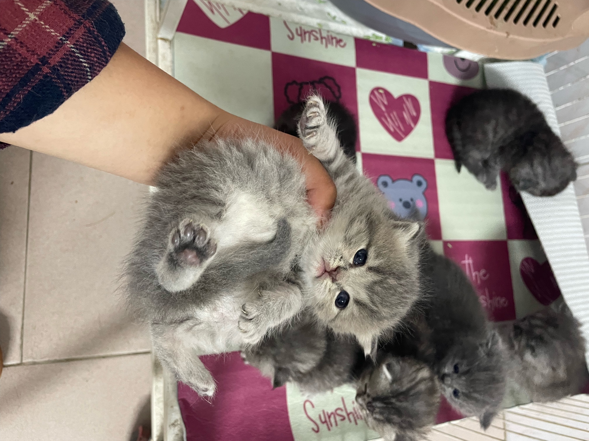 而且还不是一个品种。这一窝是意外,不带去洗澡都不知道有小猫了。