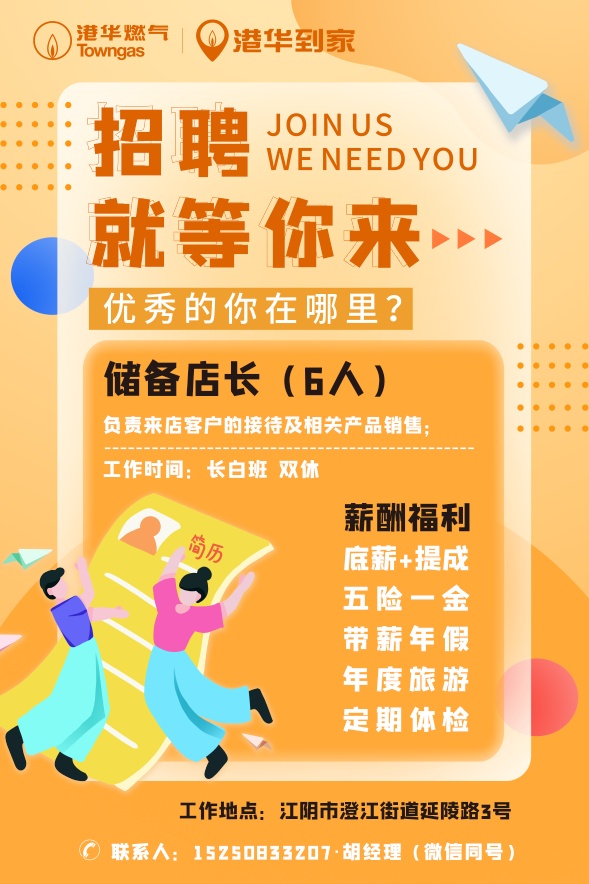澄江街道 港华燃气双休店员 五险一金 福利好