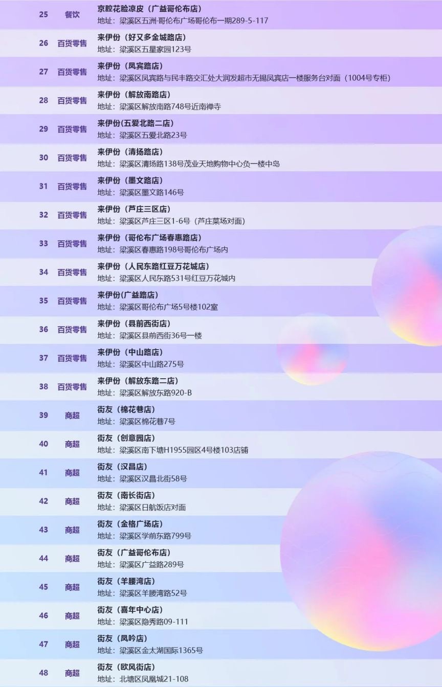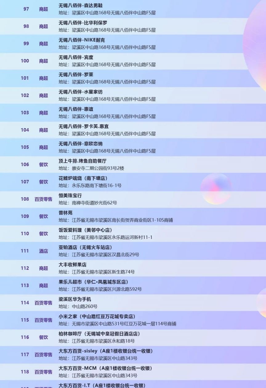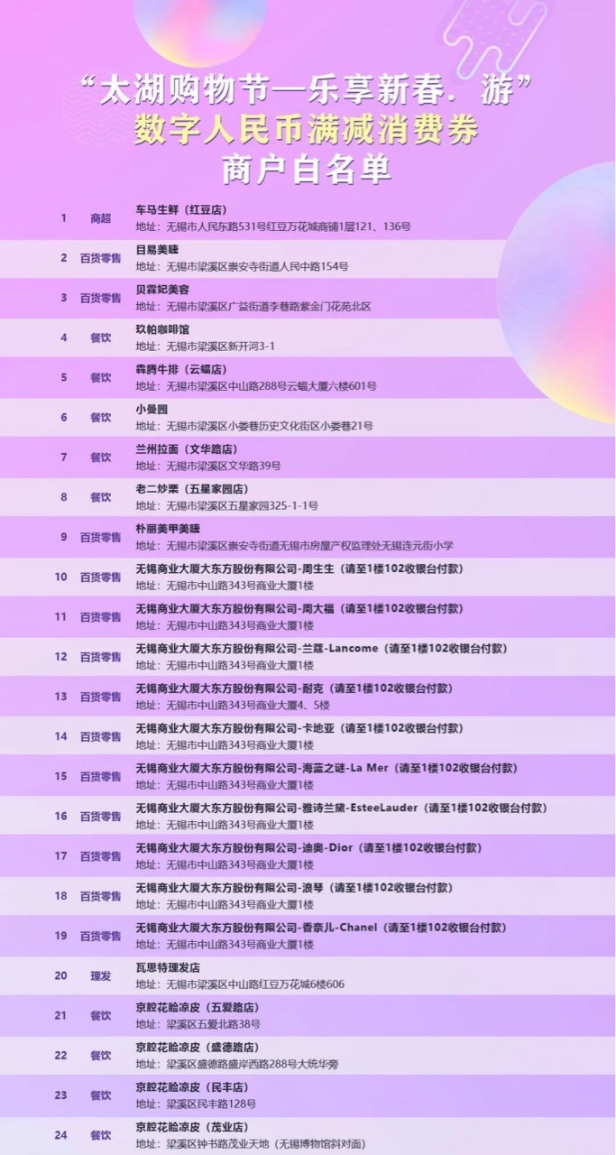 转让梁溪区数字人名币5000元消费券,可用商家如图