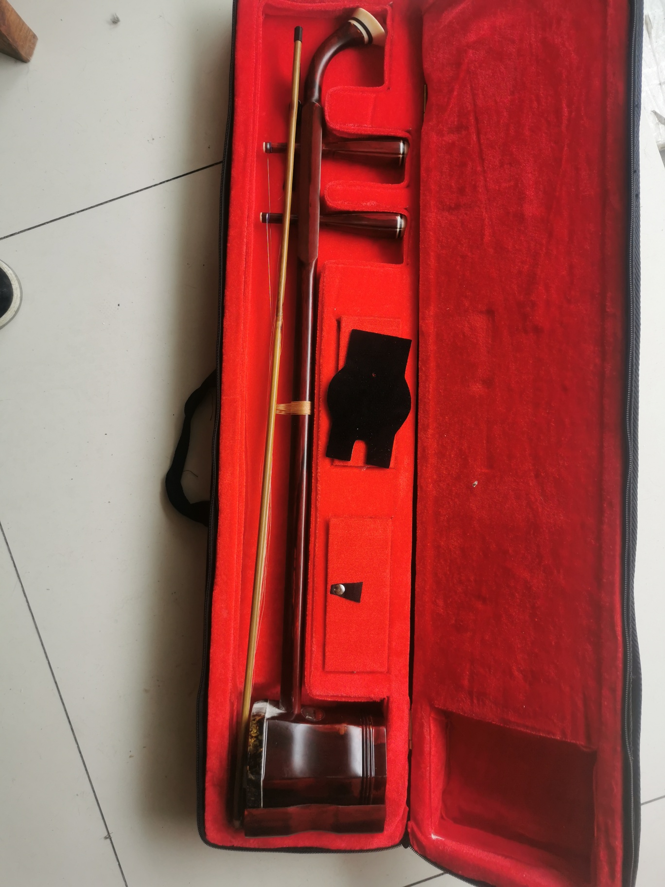 说那个蟒皮特别贵。我托人在定制一把二胡,老红木的料,18000