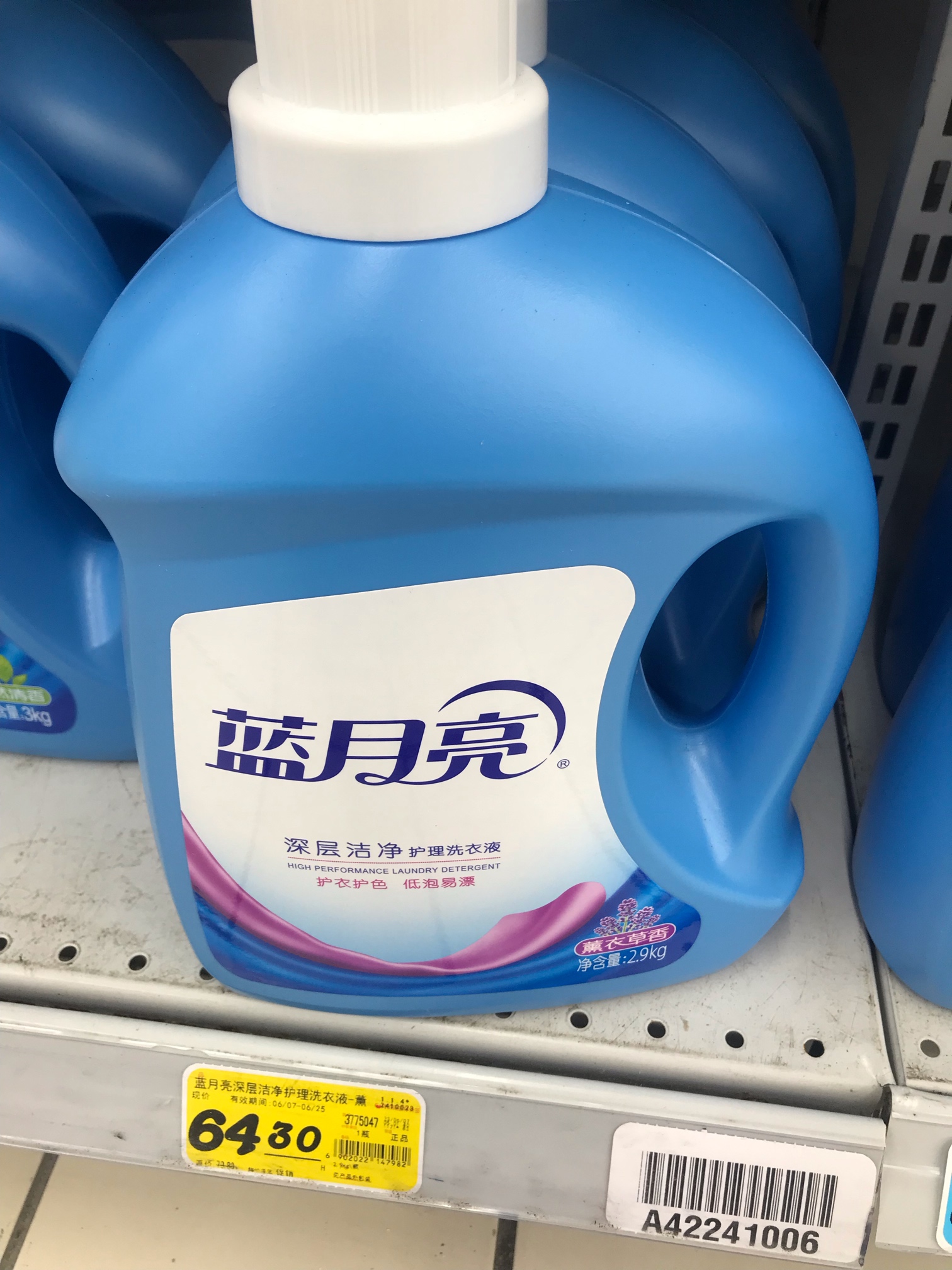 蓝月亮洗衣液薰衣草香,3kg装,45/瓶,有3瓶