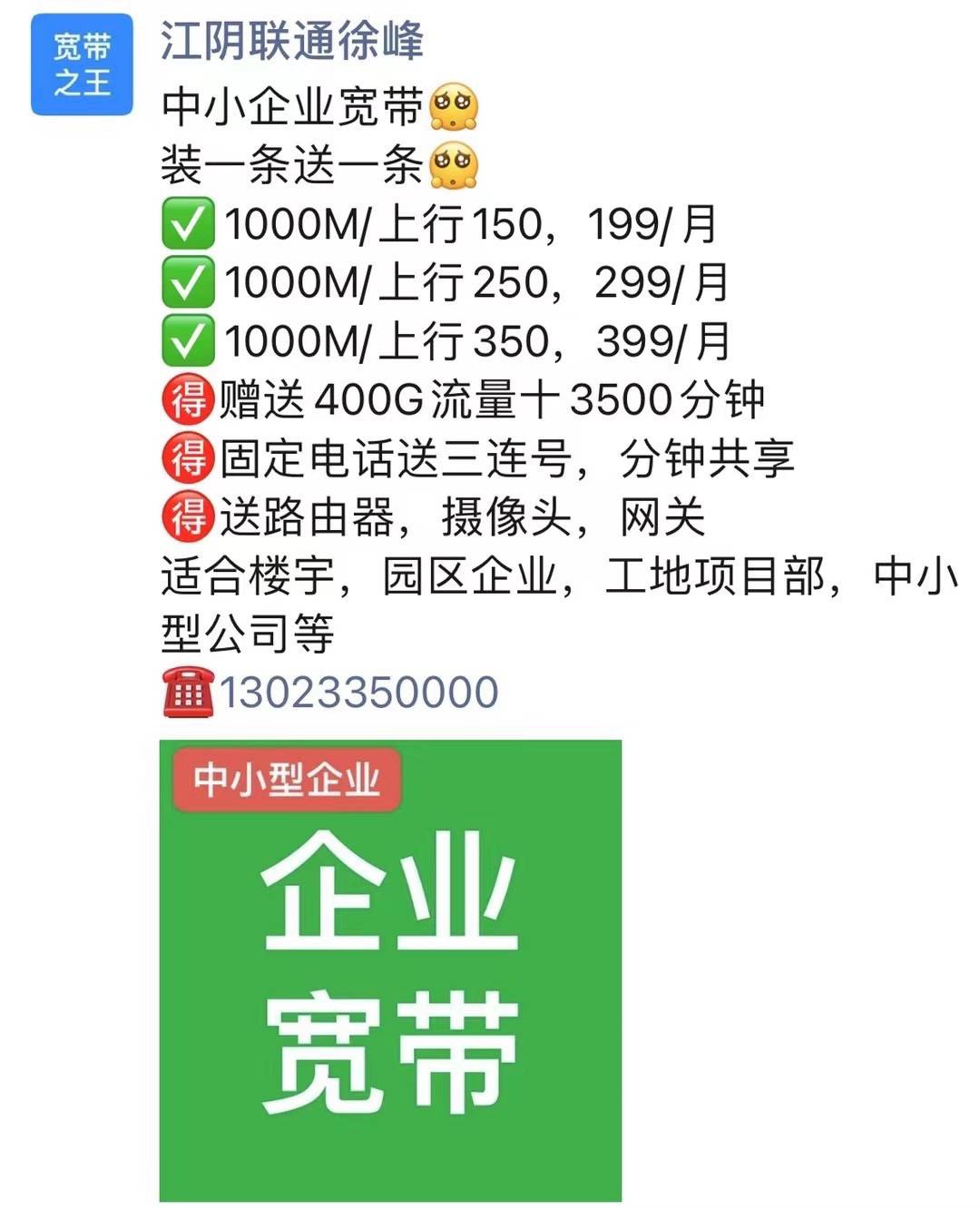 中小企业199元办宽带送888靓号(固话),199包2条千兆十送流量十送固话。上行超大。
