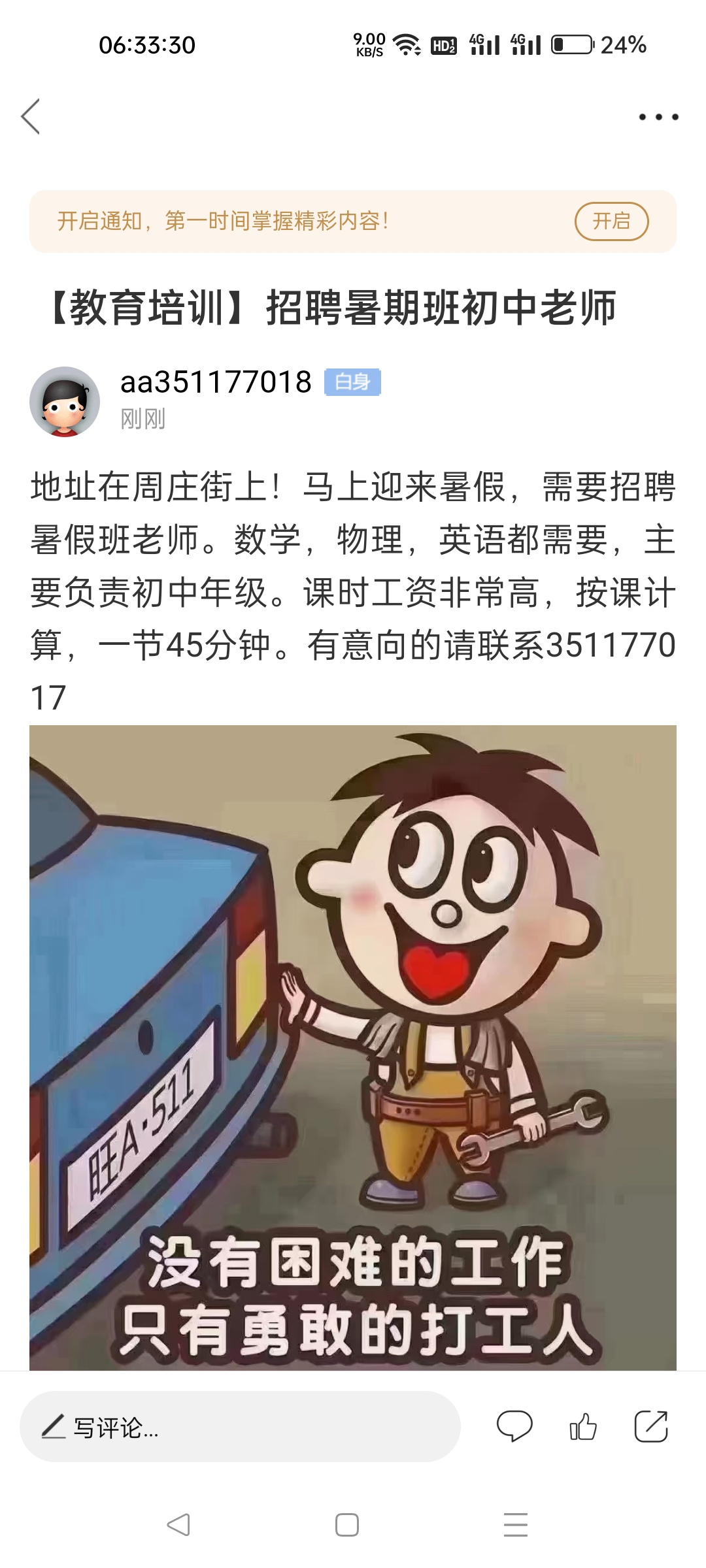 地址周庄街上,暑期班,按课计算 一课时45分钟,需要英语。数学,物理。初中老师!需要联系351177017