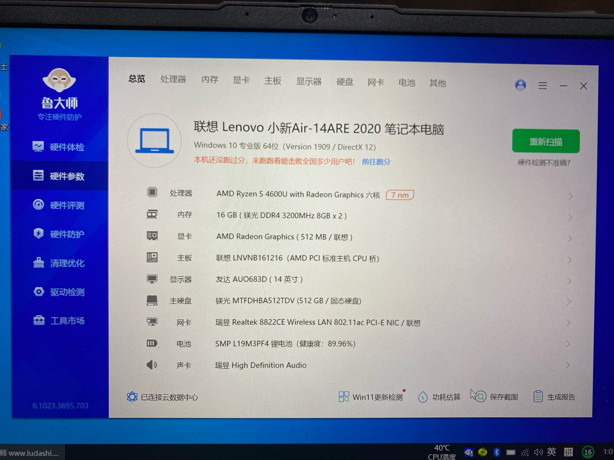 R5-4600u六核十二线程,性能强劲