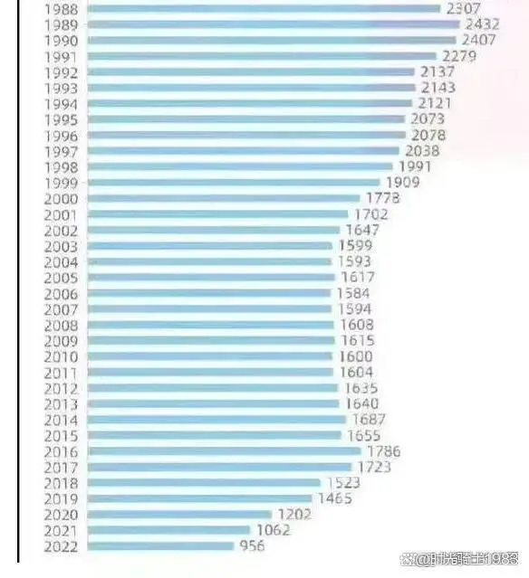 看看最近几年的中国人口出生率,16-17年是高峰,开放二胎,抢学区房,现在这出生率刚需少了快一半了,预计2023年人口出生率可能不足800万