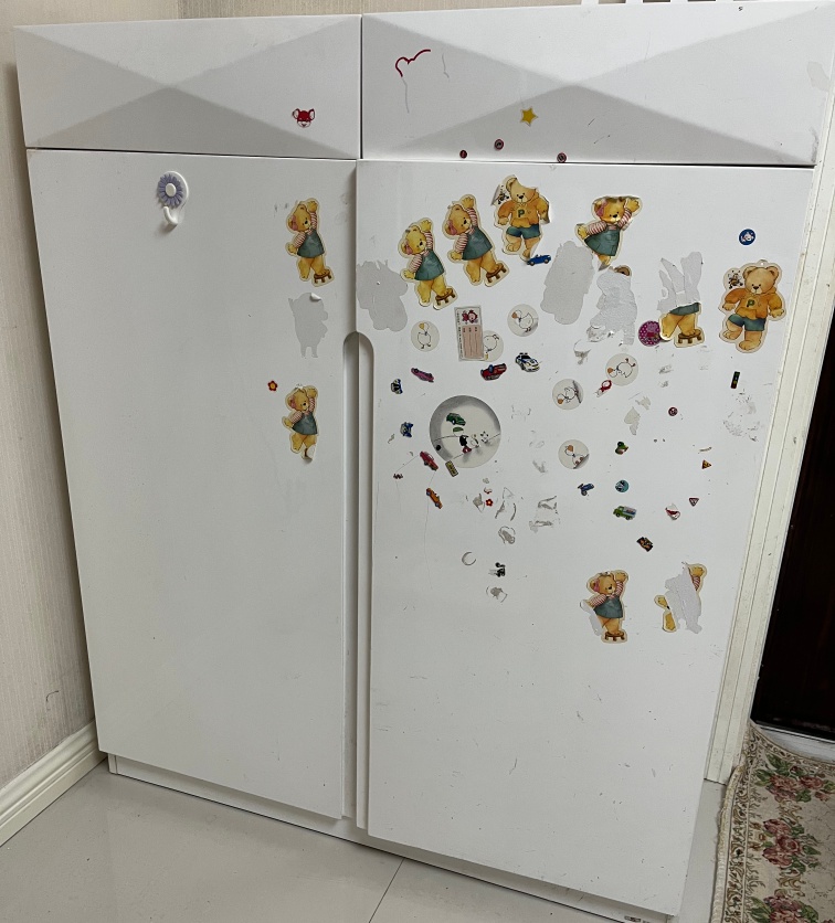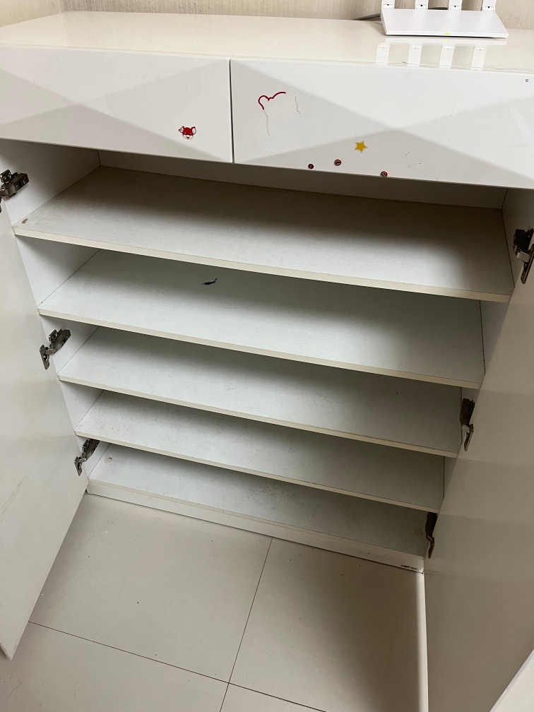白色烤漆鞋柜,总体还是比较新,就是有贴花纸
