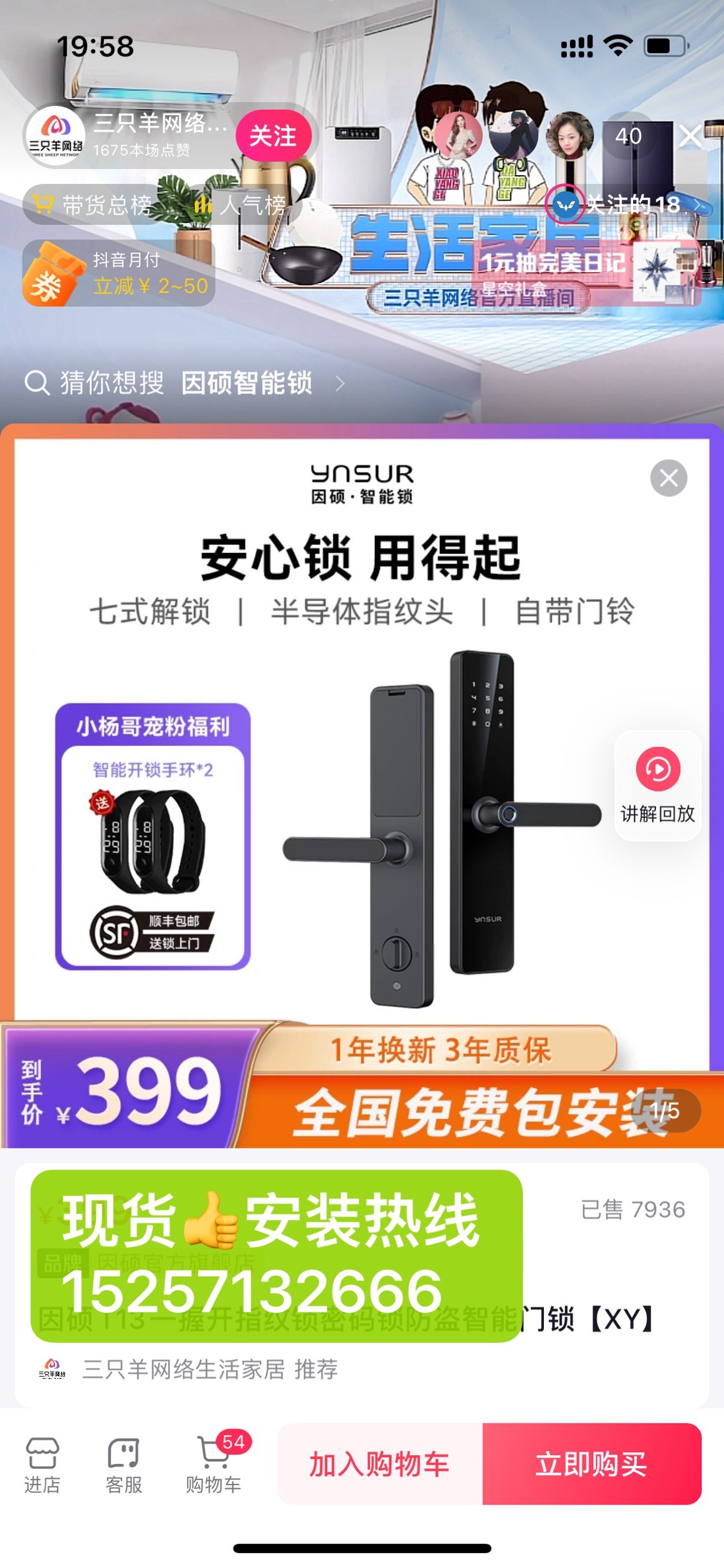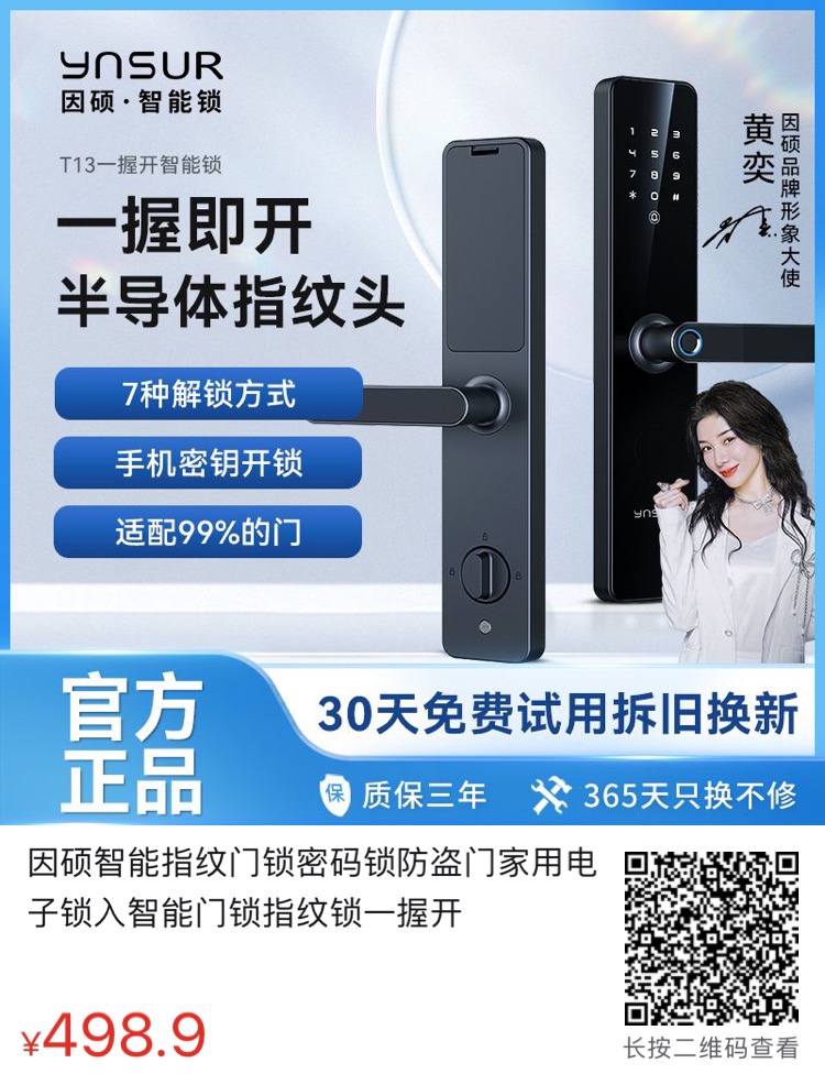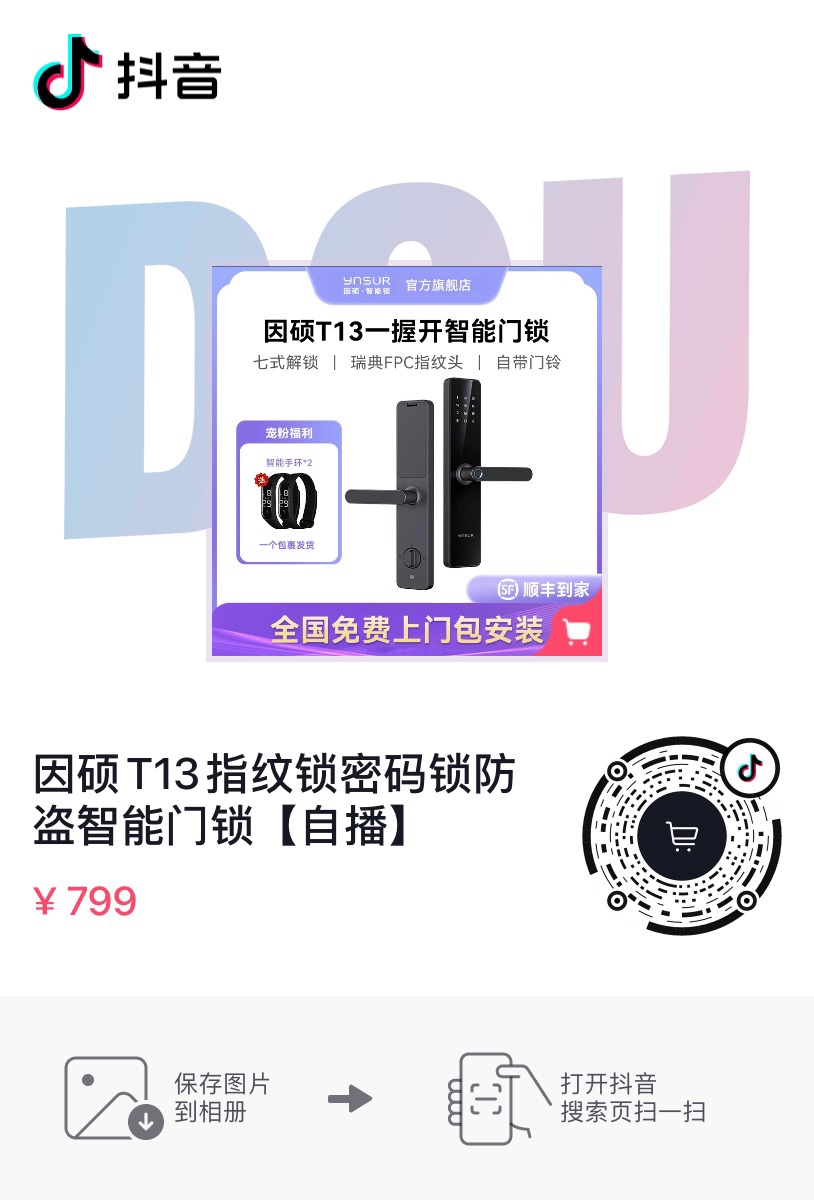 因硕智能锁799一握开配合小杨哥线上线下同价399现货上门安装 限量50套