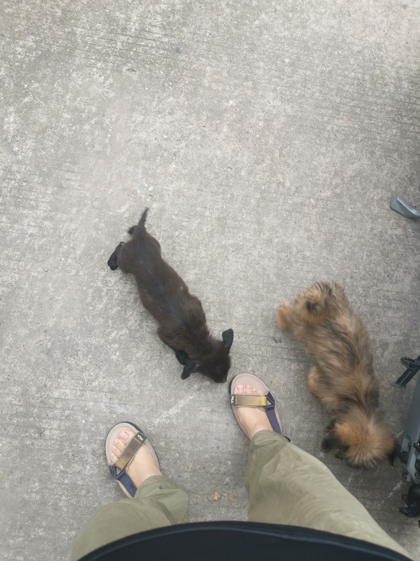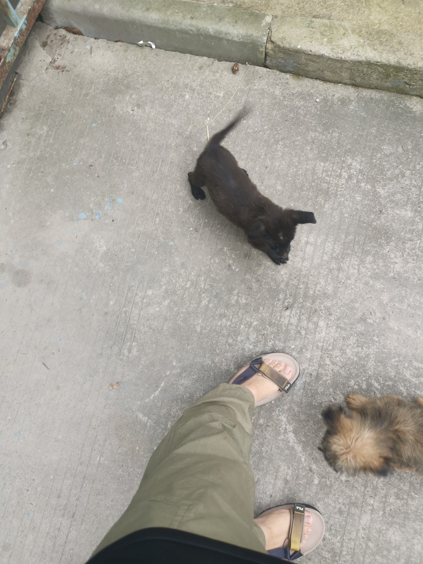 楼道旁边来了2只小狗,要的来抓