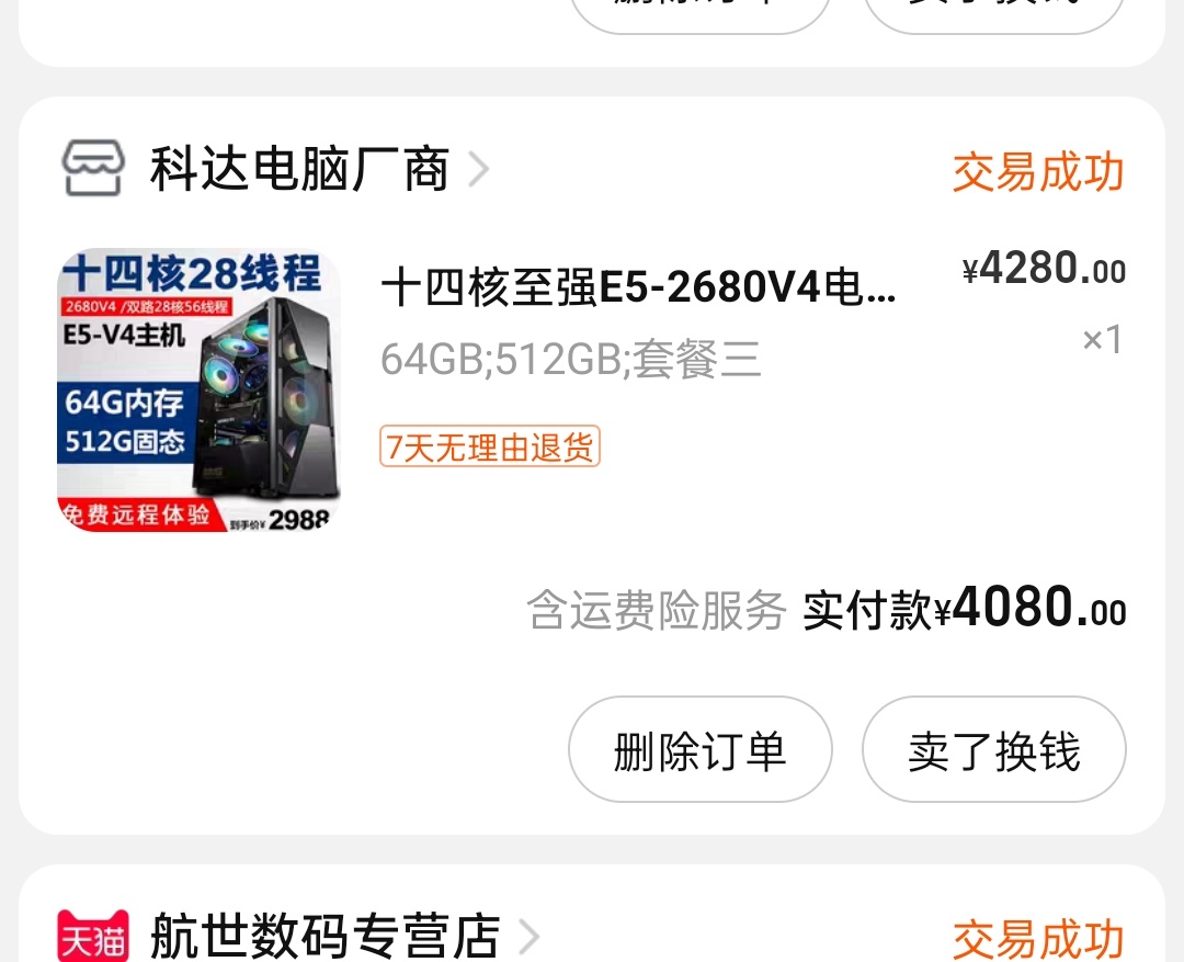 E5 2680v4主机,64g内存,512g,1050ti