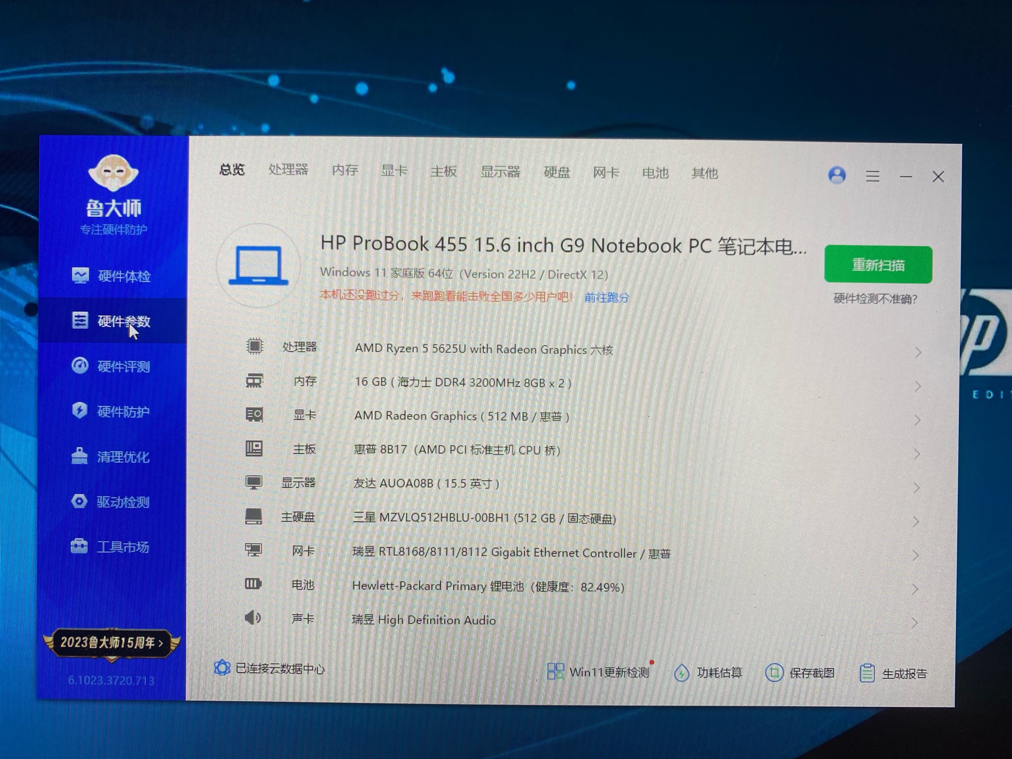 又到一台惠普笔记本 战66五代,成色极好