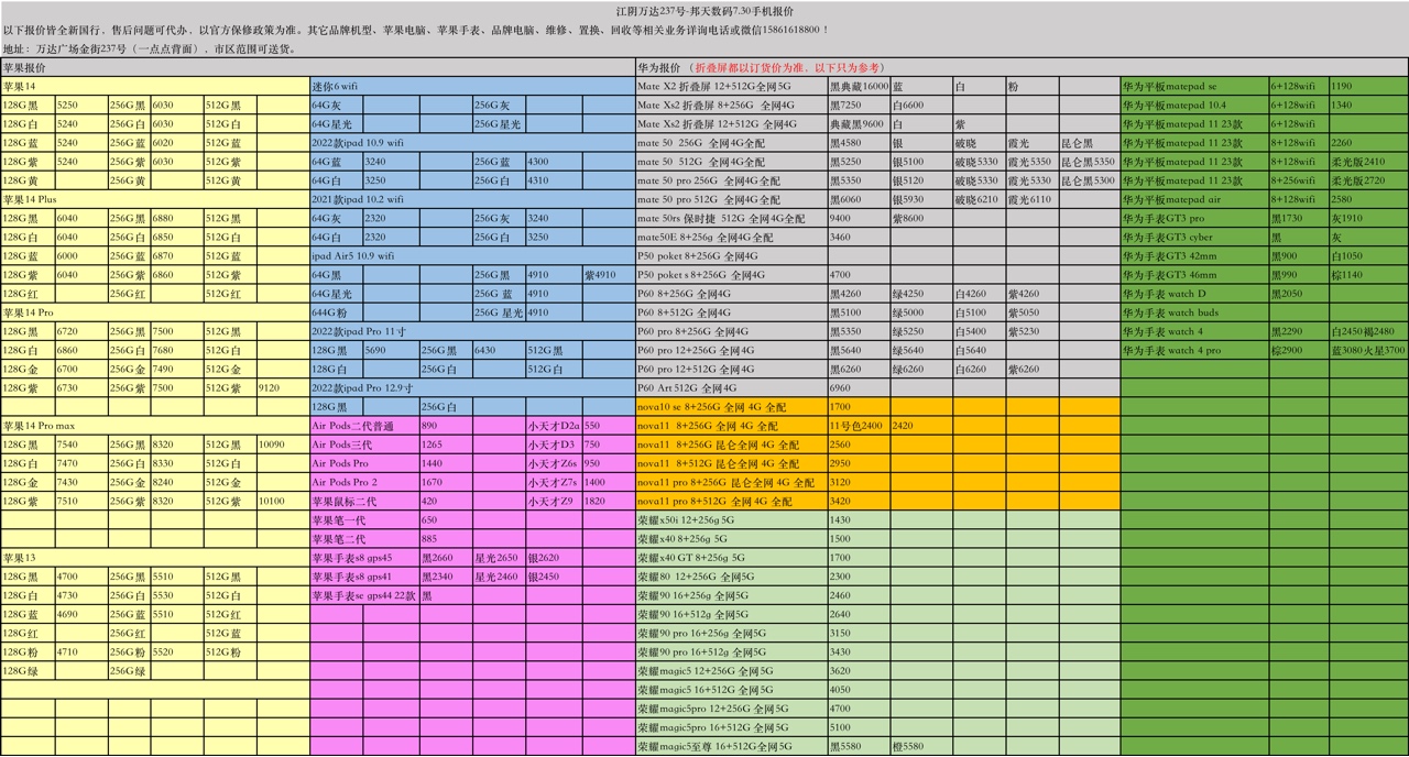 苹果华为荣耀7.30报价
