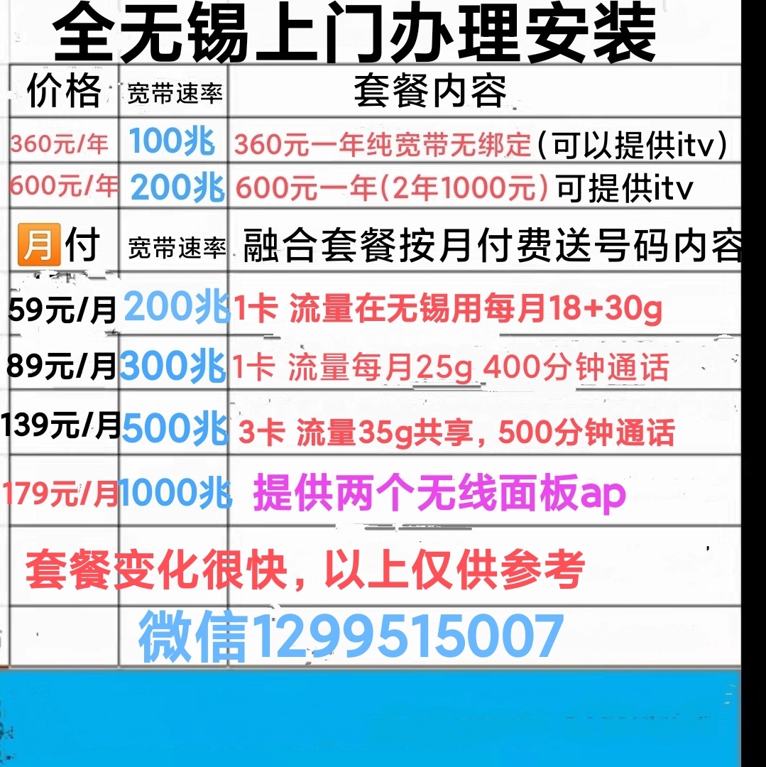 无锡电信宽带优惠办理安装,
