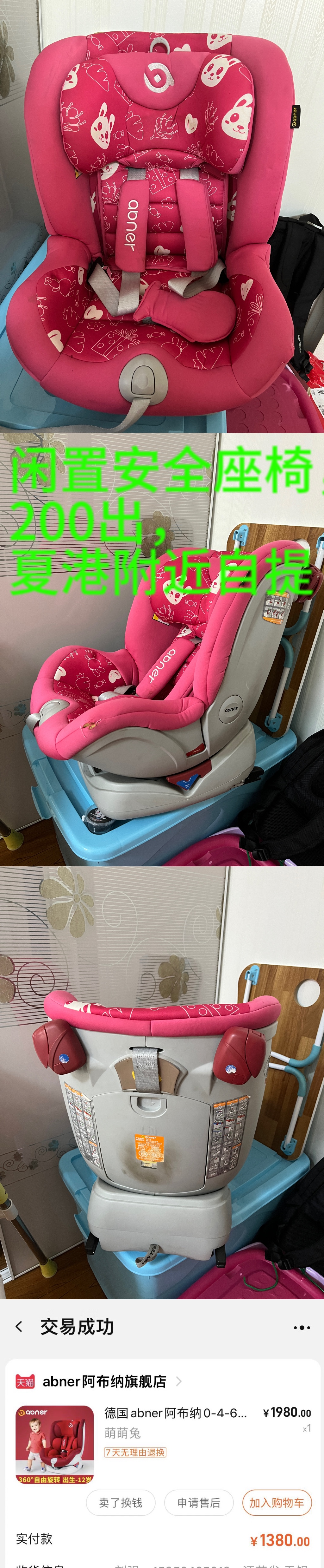 宝宝不肯做了,出abner 安全座椅,360度可旋转,可坐可躺,200元,夏港附近可送可自提