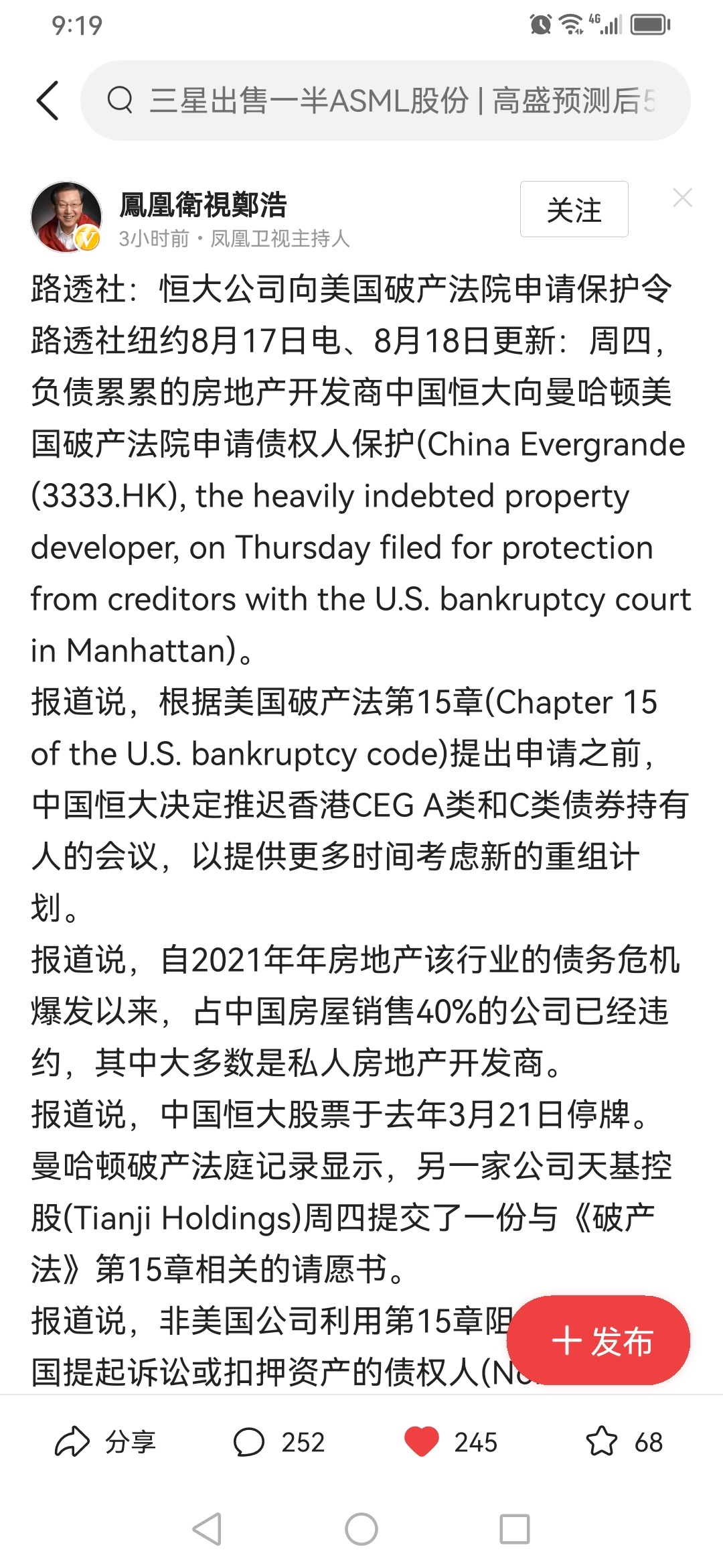 恒大在美申请破产保护!