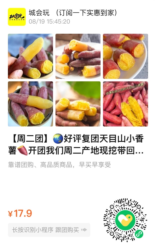产地直发天目山小番薯开团