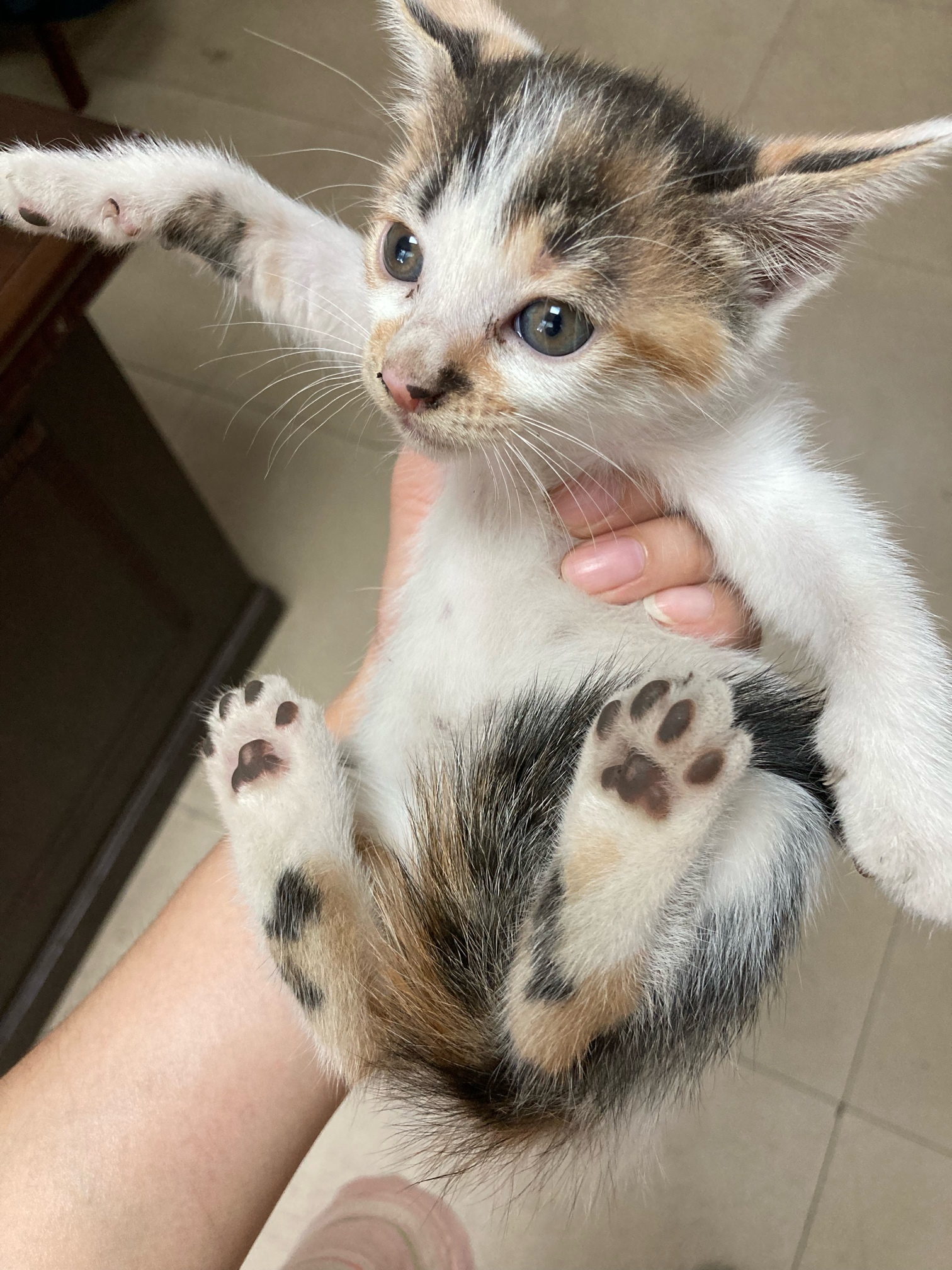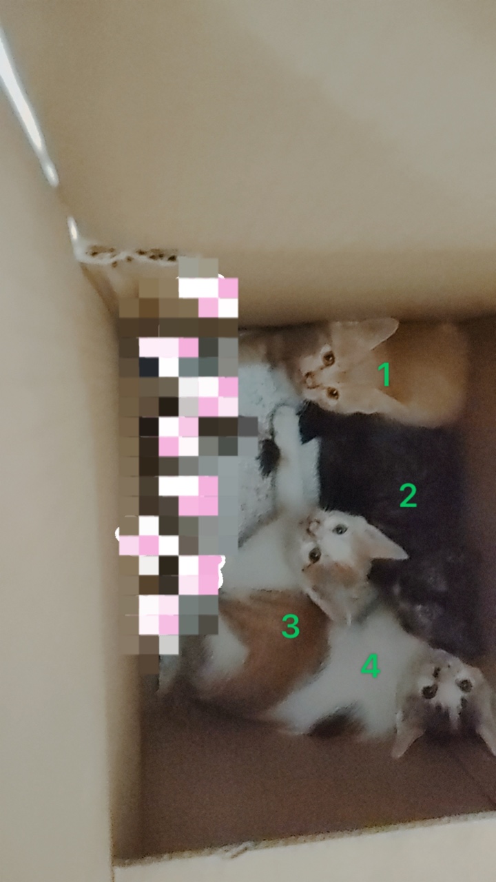 两只橘白,一只三花,一只烟熏火燎的玳瑁。性格都不错,45天大了