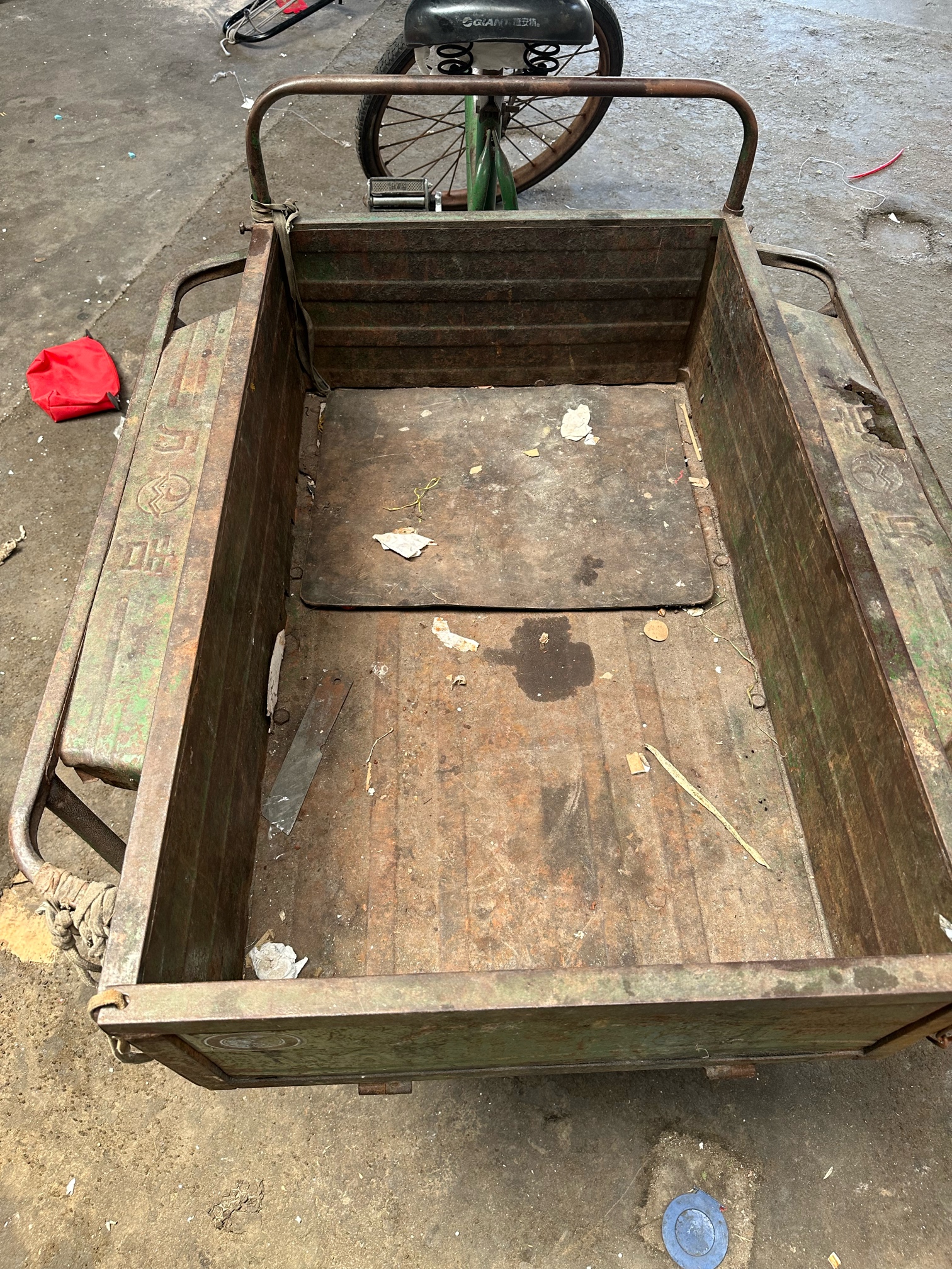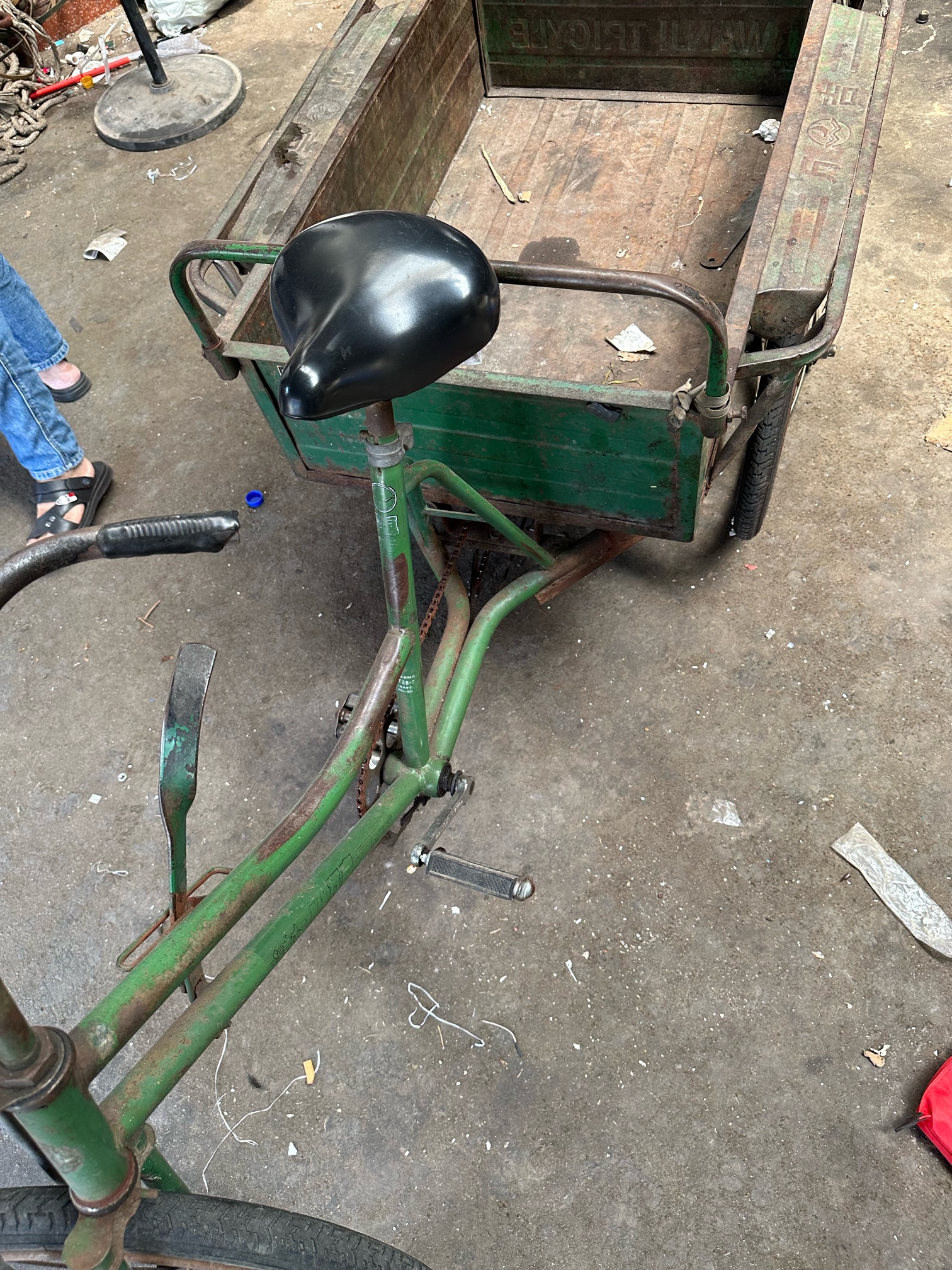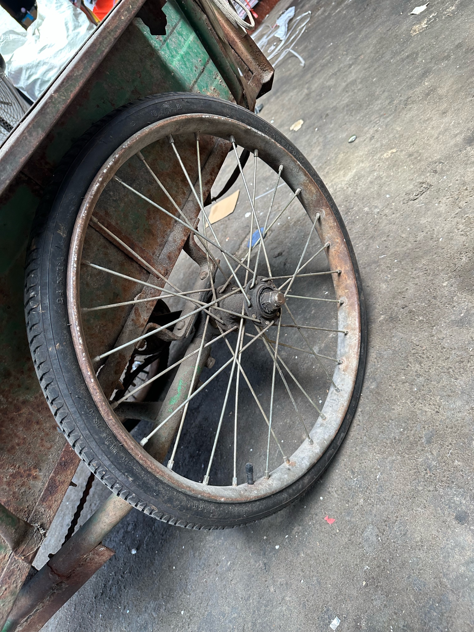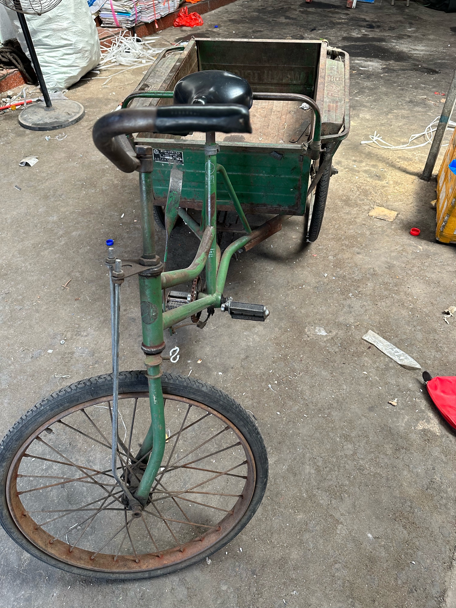 万吉脚踩三轮车,轮胎新换的