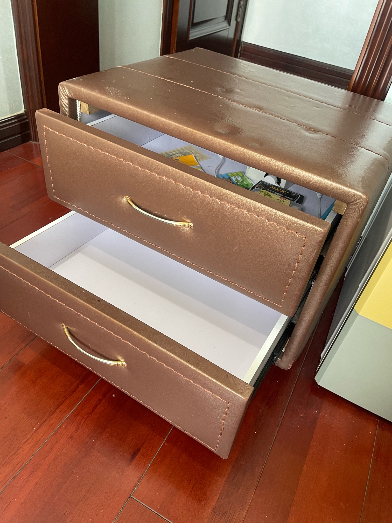 家里自用的 床头柜因为房间小只用了一个 另一个一直闲置 真皮床一套的