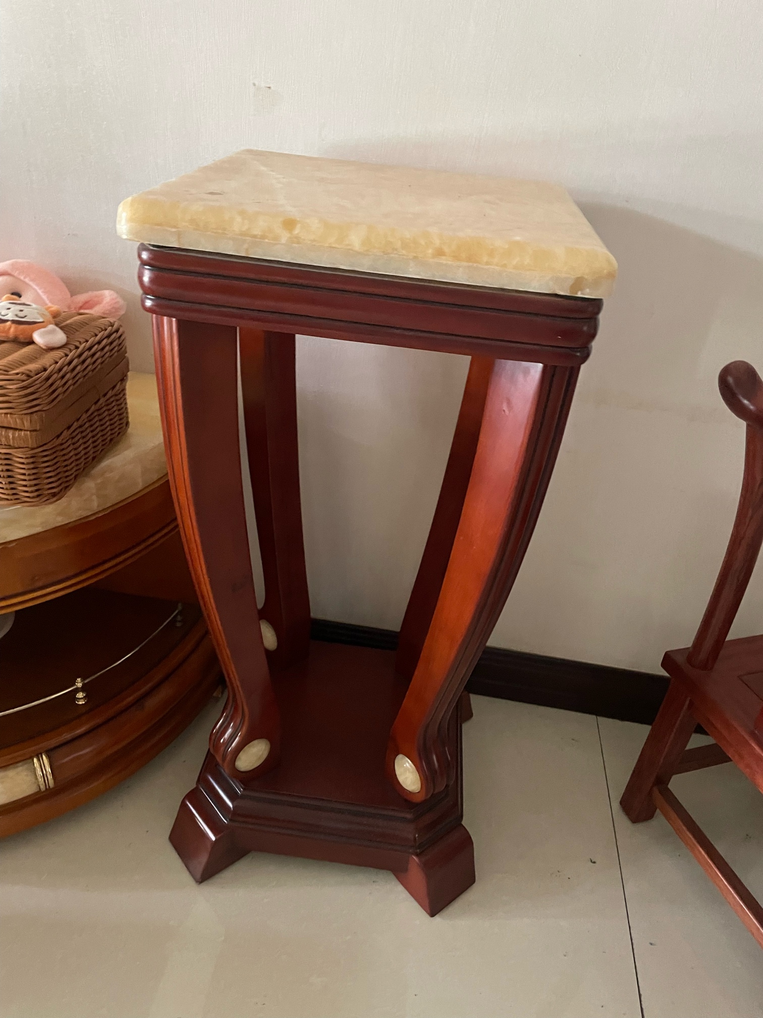 花架是实木的 上面是大理石 原价都很贵的