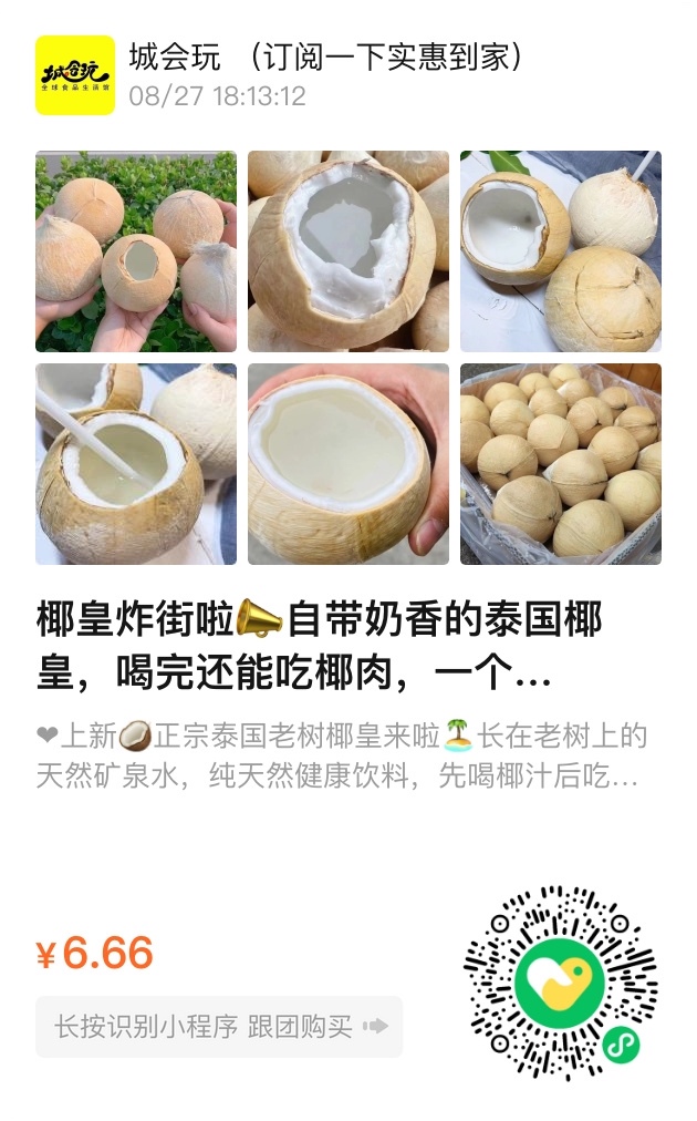 椰皇炸街啦 数量有限 赶紧囤自带奶香的泰国椰皇,喝完还能吃椰肉,一个字“爽”!
