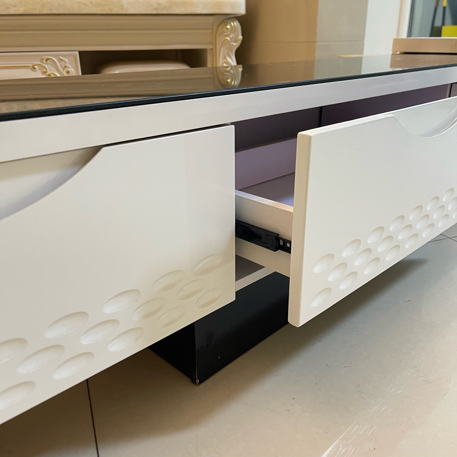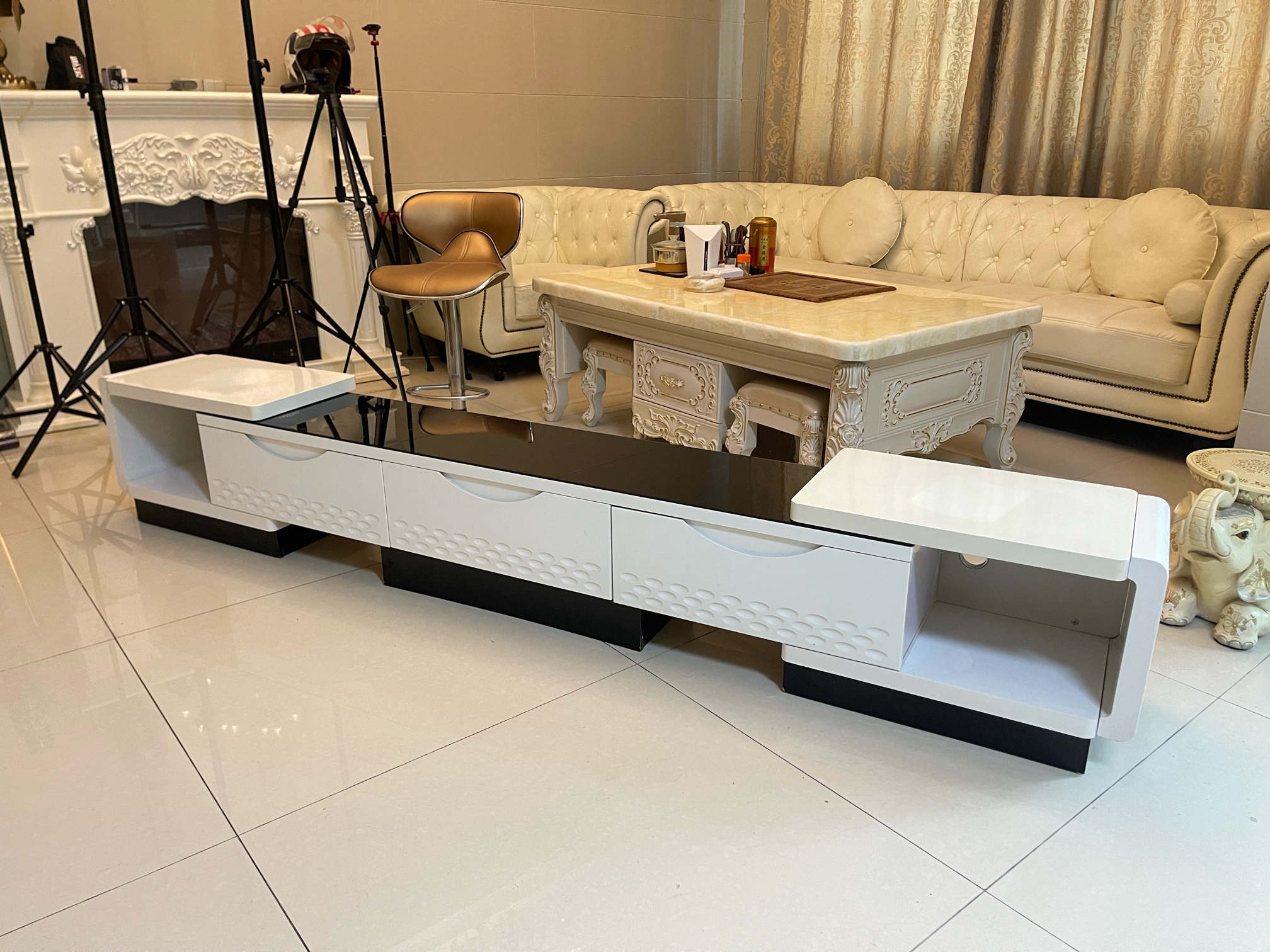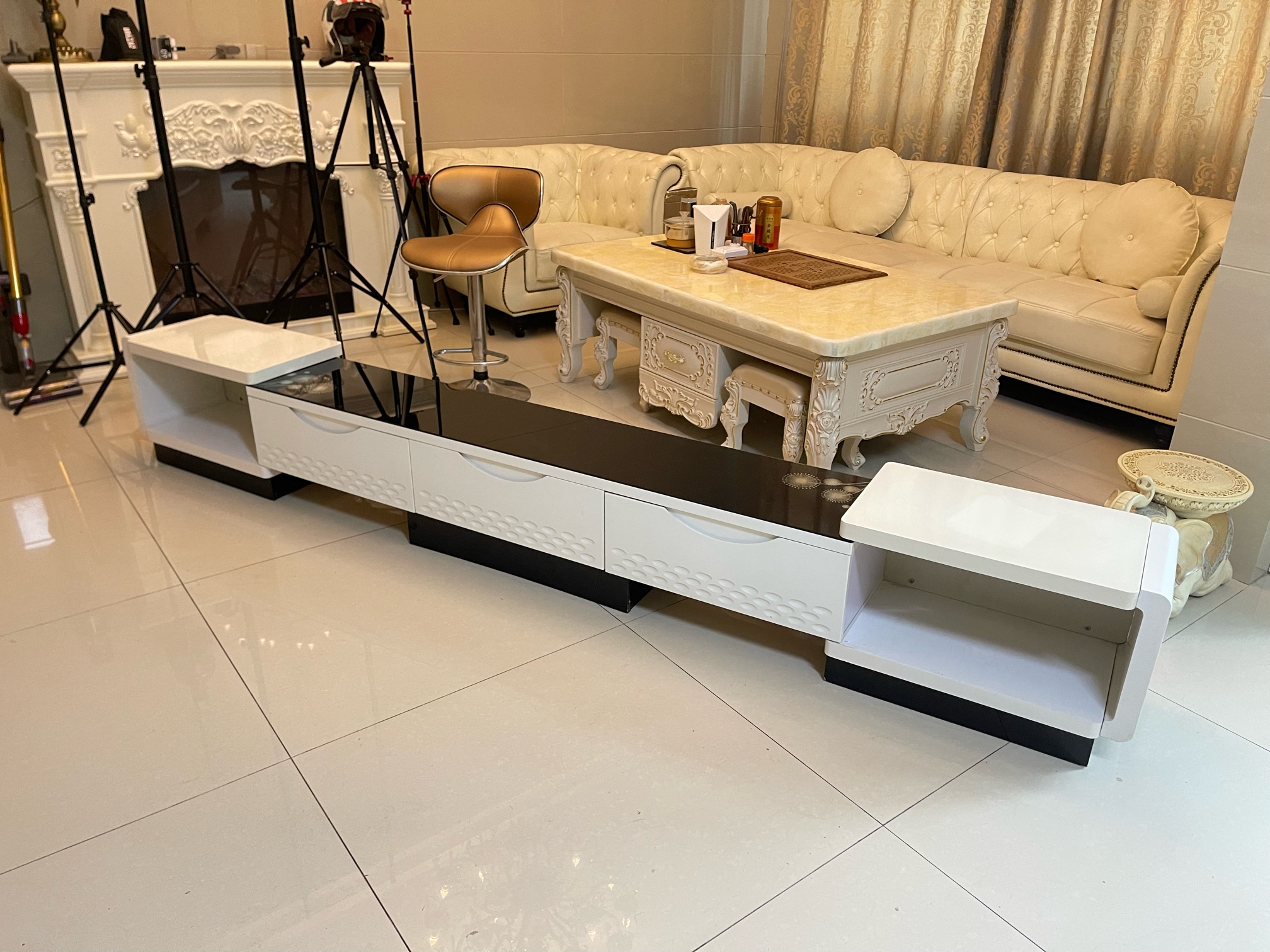 我因为客厅改造需要买了新的高脚电视柜了,这个就便宜点出掉了,原价2300买的