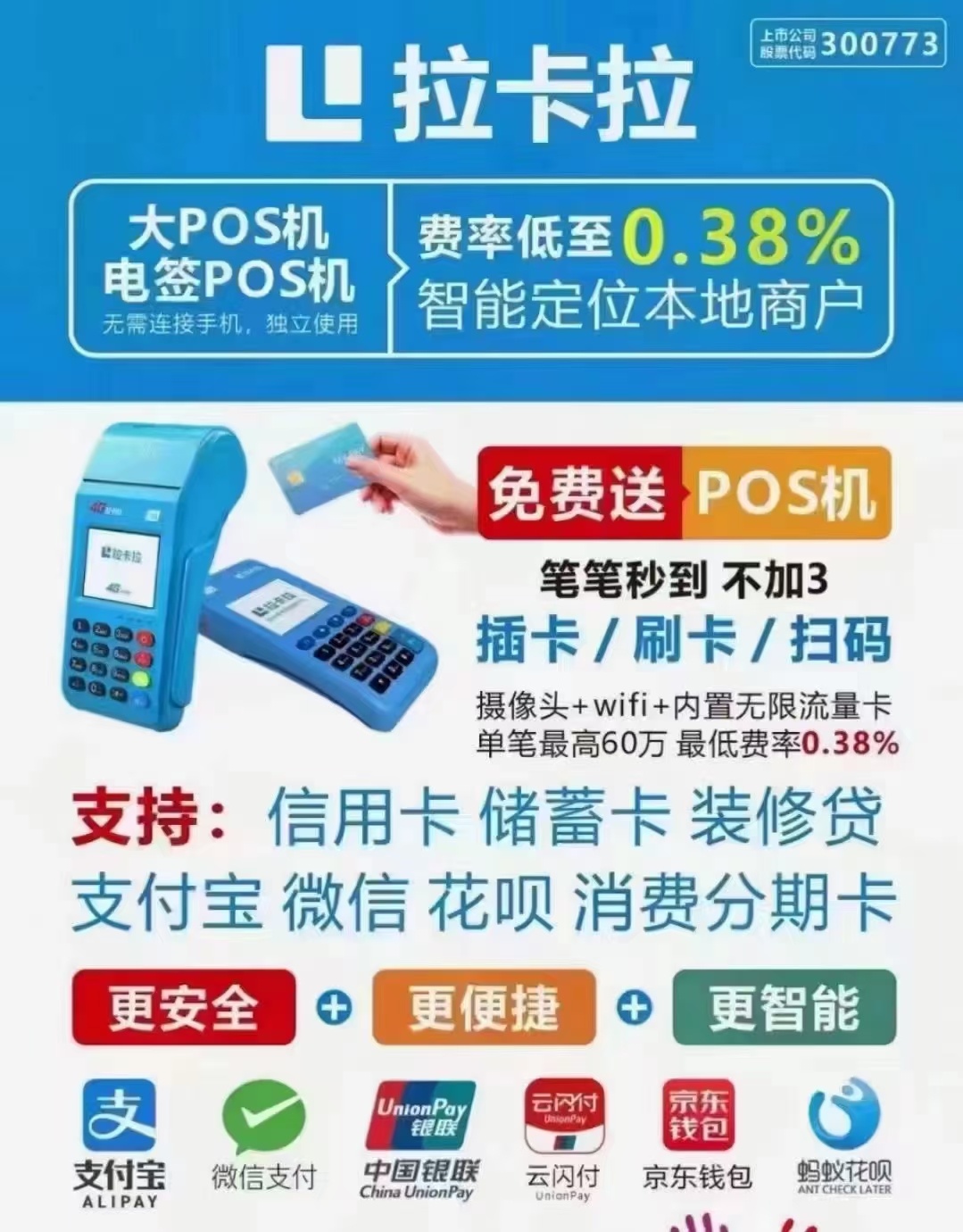 免费办理拉卡拉刷卡机招募推广人员