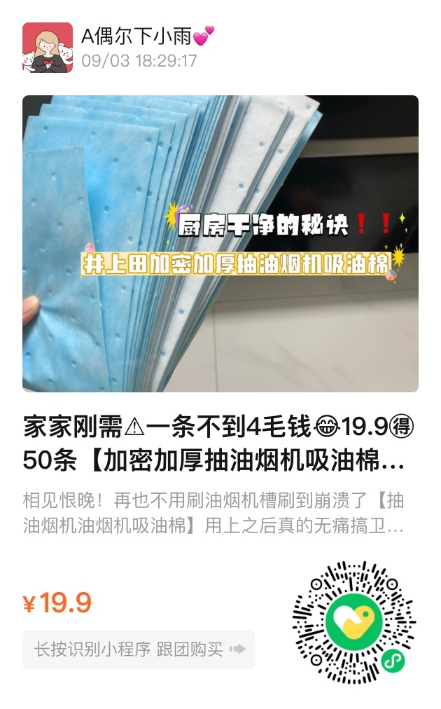 家家刚需【吸油烟机吸油条】一条一个月不到4毛钱