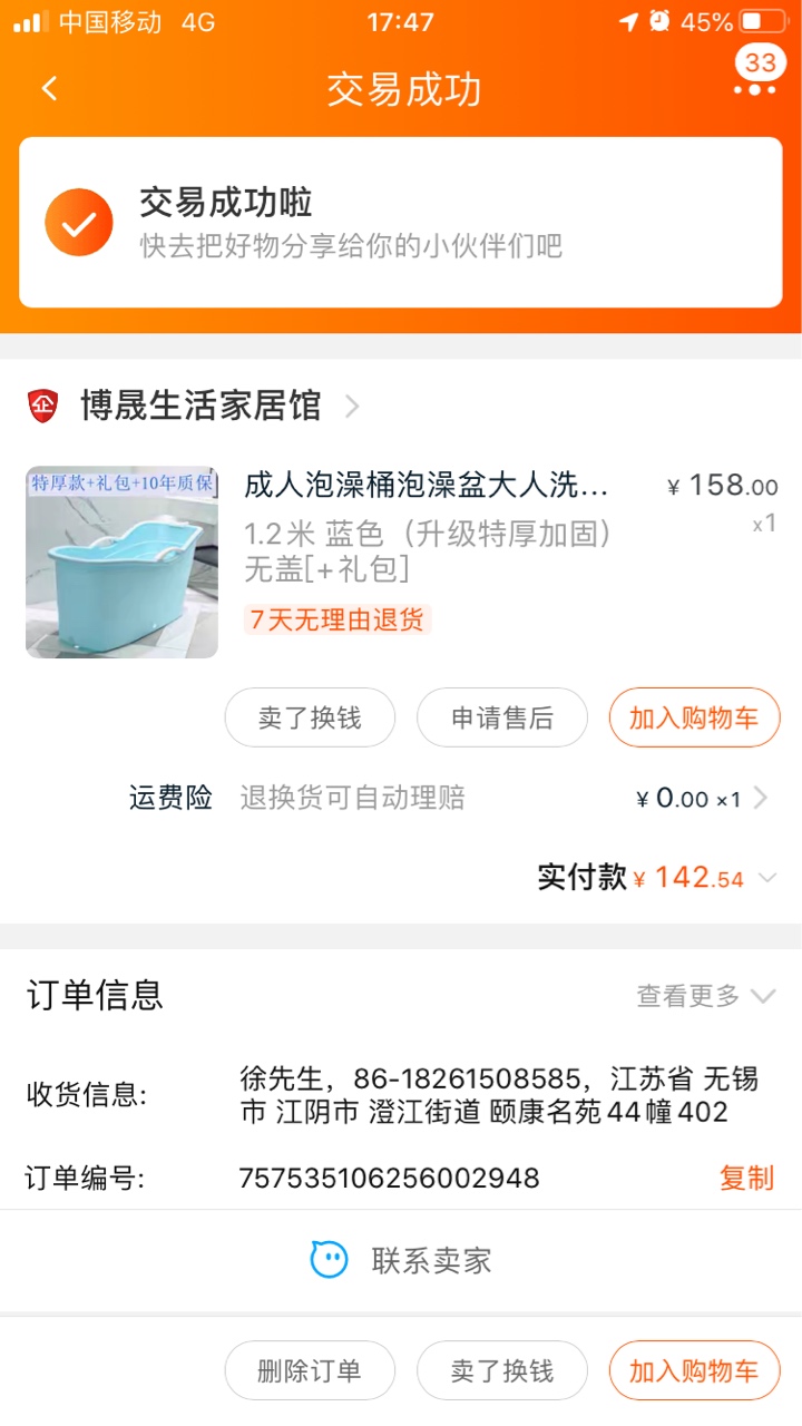 家里圆的泡澡桶嫌小了,买了这款长的,腿能伸开,142购入,只用过两三次,30出。