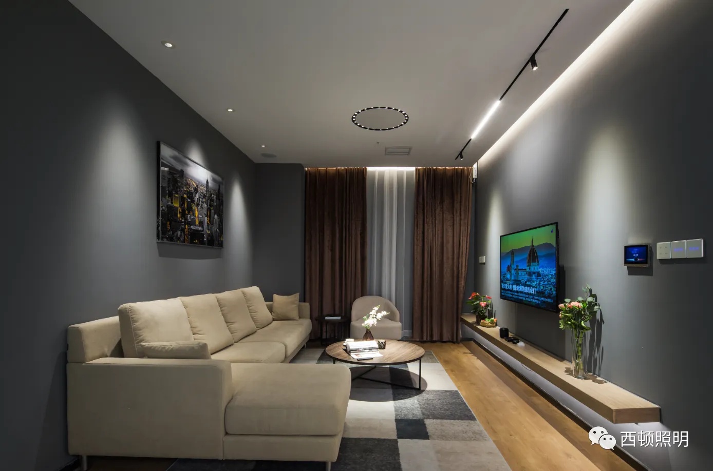 当业主确定选用线形磁吸灯系统后,照明设计师会在前期完成业主生活习惯调研后,正式进行灯光设计。根据情景需求,预设不同的灯光场景模式,整体造型简单,却设计感十足,为居住者增添生活仪式感。