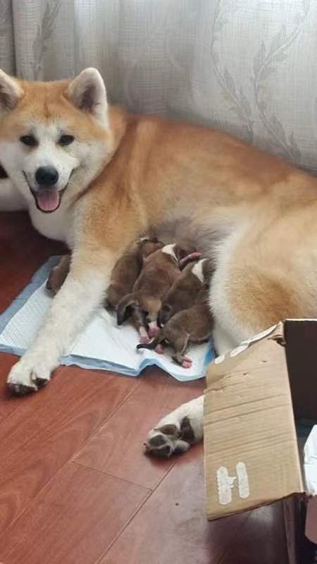 自己家养的秋田犬生了六只崽,有喜欢的朋友可以联系我聊聊!